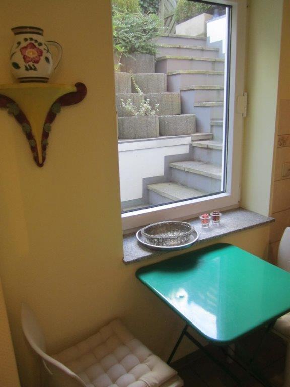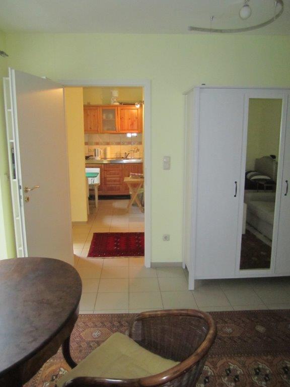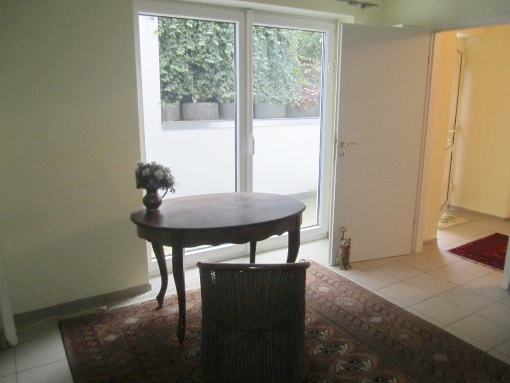 Shared garden, living room / bedroom with 1.40 m bed, parking space available, bright and quiet apartment with large floor-to-ceiling windows, maximum 1 pers., Minimum rental period 6 months, Pets by arrangement – Rent incl. non smoker, Additional costs: 920 per month , plus electricity, incl. heating, plus 150 Euro final cleaning
