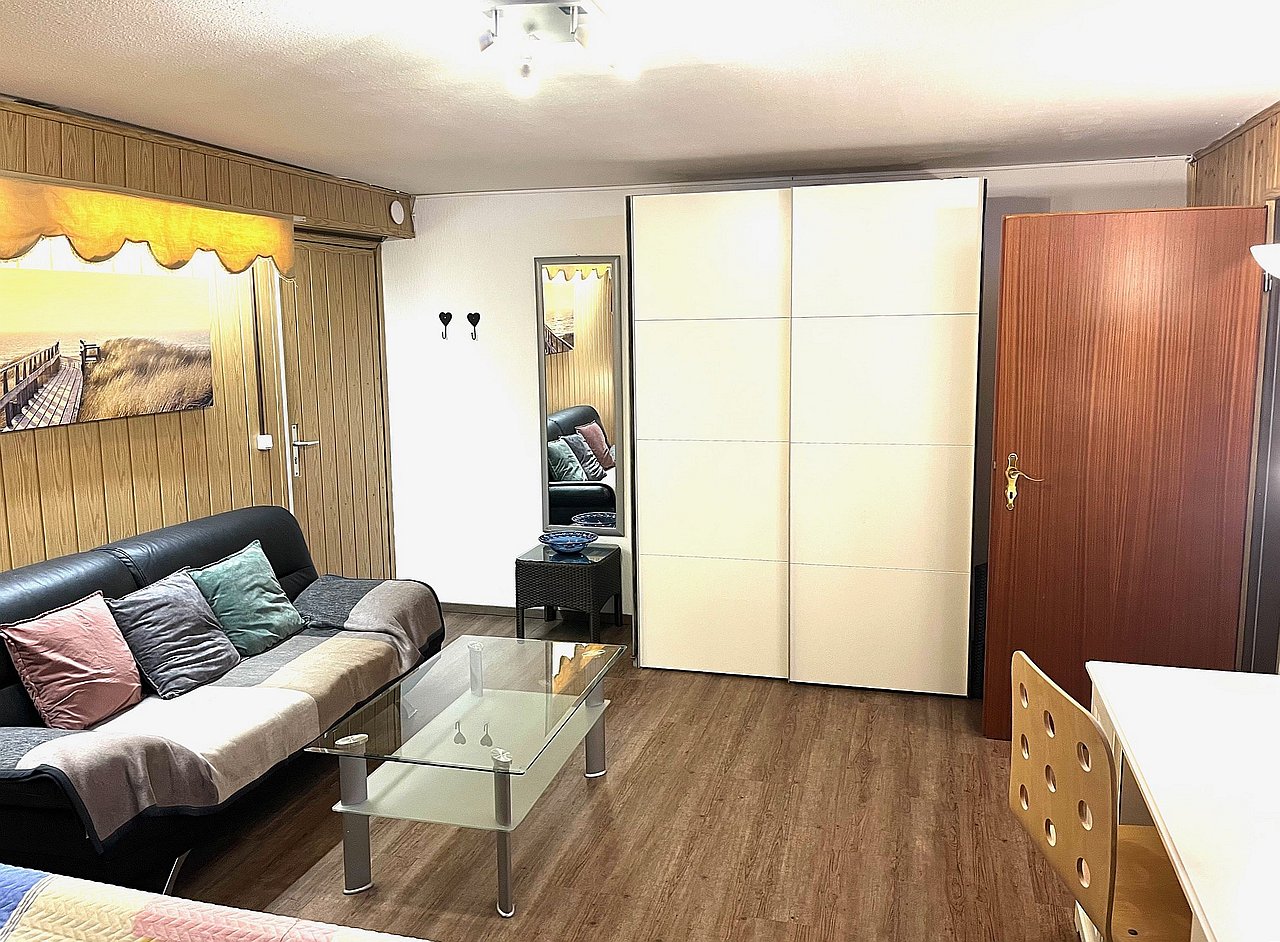 garden for shared use, living room / bedroom with double bed 2.00m, bedlinen and towels available, 5 Euro for single usage of the washing machine, incl. internet, good parking facilities, pets not allowed, non-smoking, not suitable for children, max. 2 persons,Rent applies to 1 person, rate increases with each additional occupant. In case of additional occupants, full rental price upon request, minimum term of lease 6 months : Rent negotiable