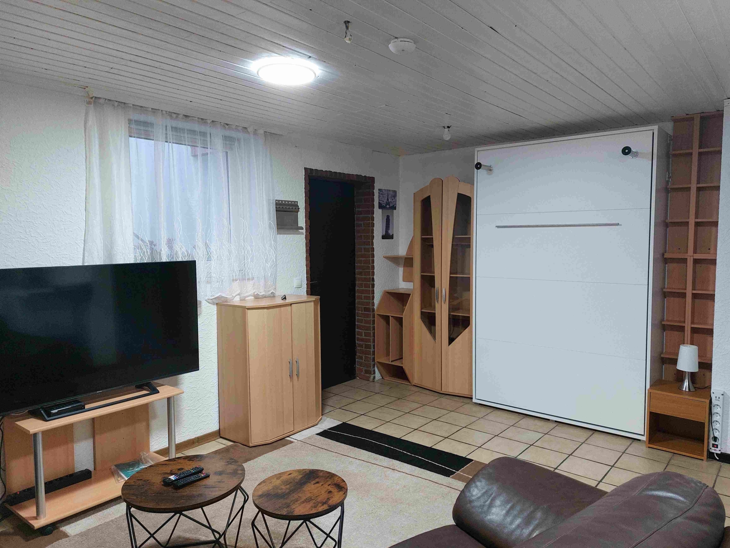 Living/bedroom with wardrobe bed 1.20 m, bed linen and towels available, incl. WIFI internet access, pets not allowed, non-smokers only, parking available at the house, max. 1 person, 6 months minimum rental period