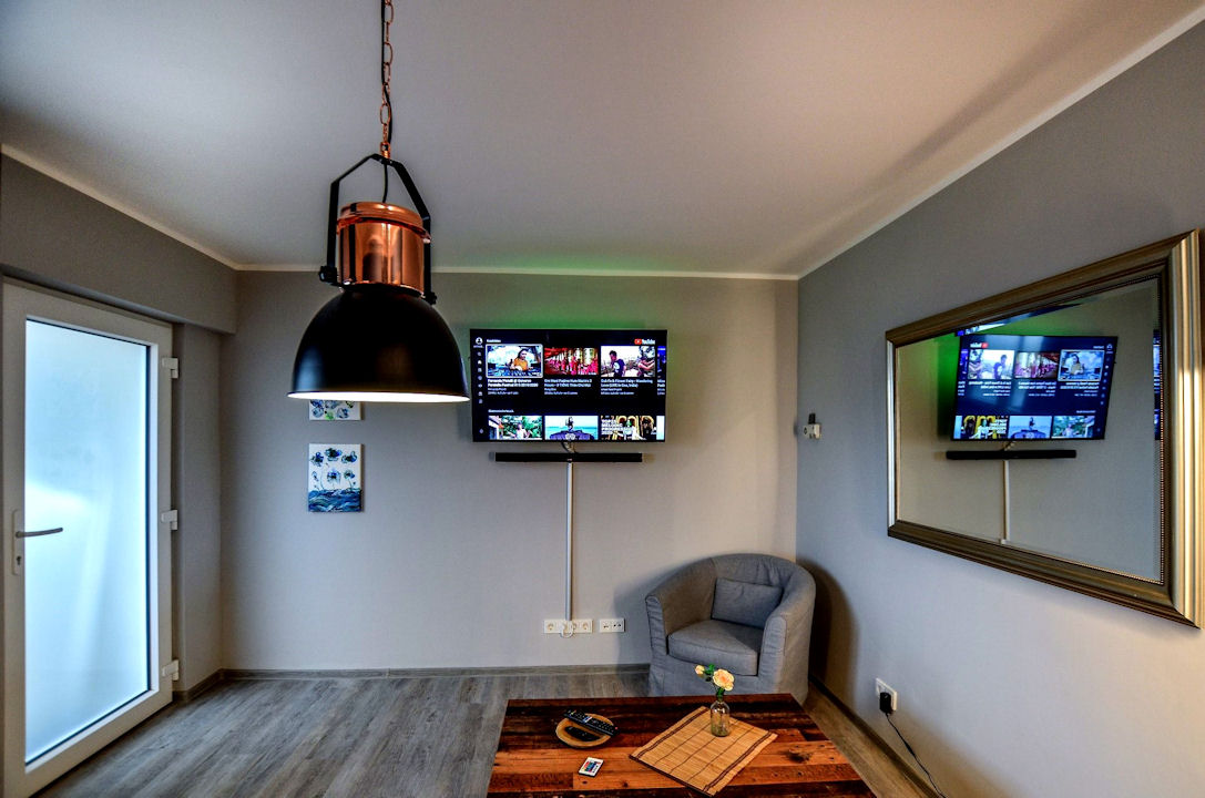 • modern furniture, laminate floor, integrated fitted kitchen, daylight bathroom with shower, smart tv, Wifi internet access, soundbar, washing machine in the basement