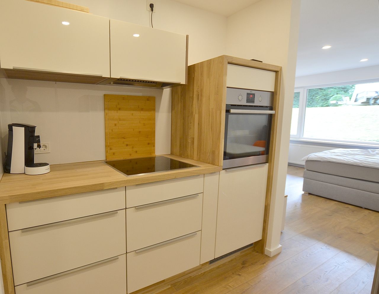 Garden use. Living room/bedroom with box spring bed (1.40 m), bed linen and towels provided. Includes Wi-Fi Internet access. Pets not allowed, non-smoking, parking space optional upon availability and at extra charge, max. 2 persons, rental price applies to one person.