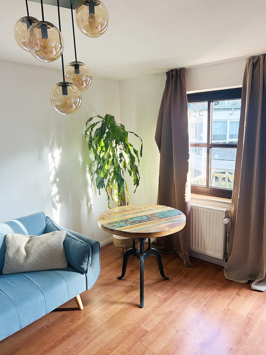 Spacious balcony, living room with dining area, bedroom with double bed (1.40 m × 2.00 m), third additional room can be used as a home office or guest room. Bed linen and towels provided. Pets not allowed, non-smoking, internet connection included, parking space optional depending on availability for an extra charge, max. occupancy 2 people, rental price applies to one person. Occupancy with a second person on request. Minimum rental period 6 months — rent including utilities 1500 euros per month, including electricity plus heating, plus 100 euros for final cleaning.