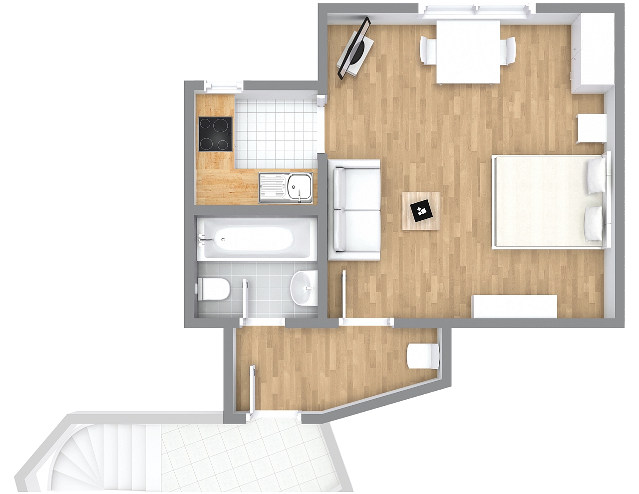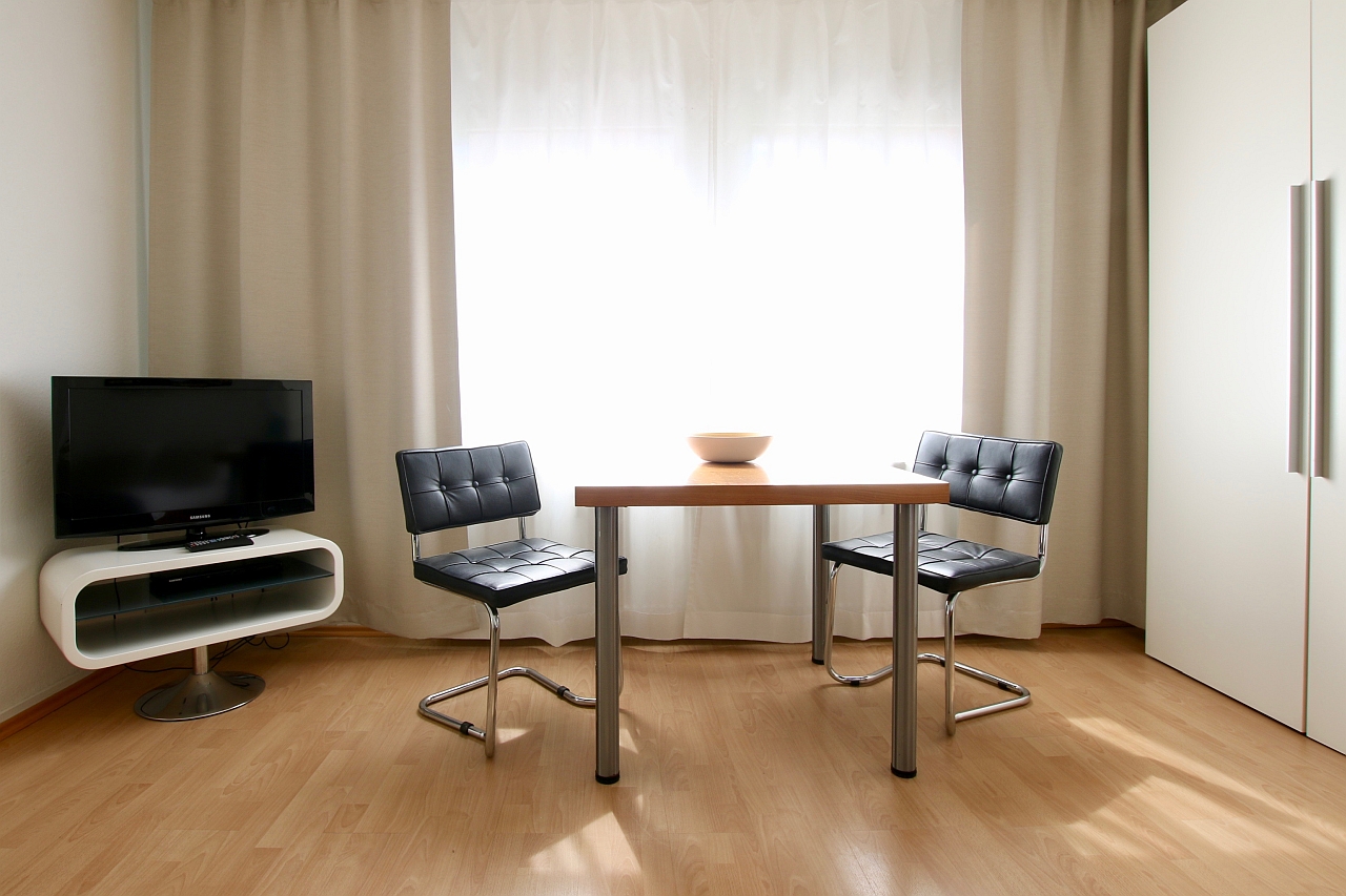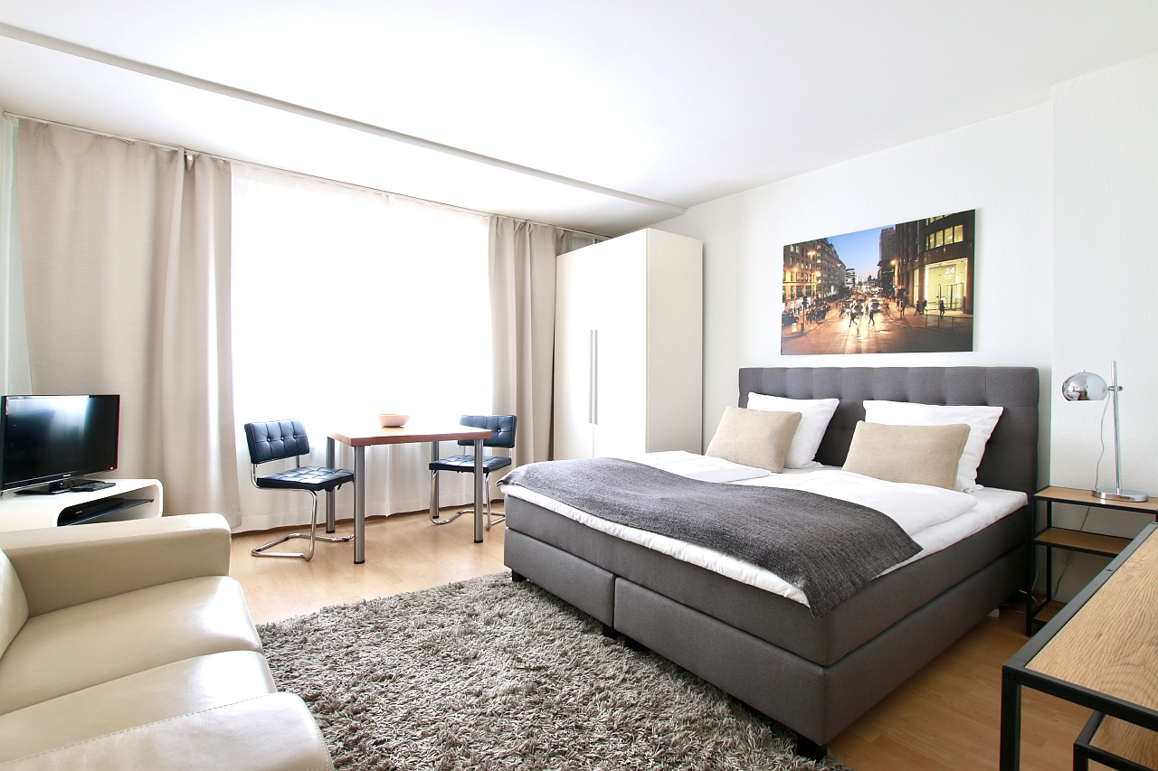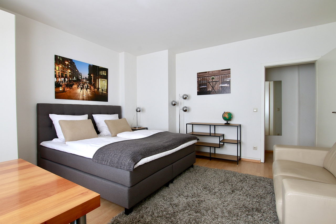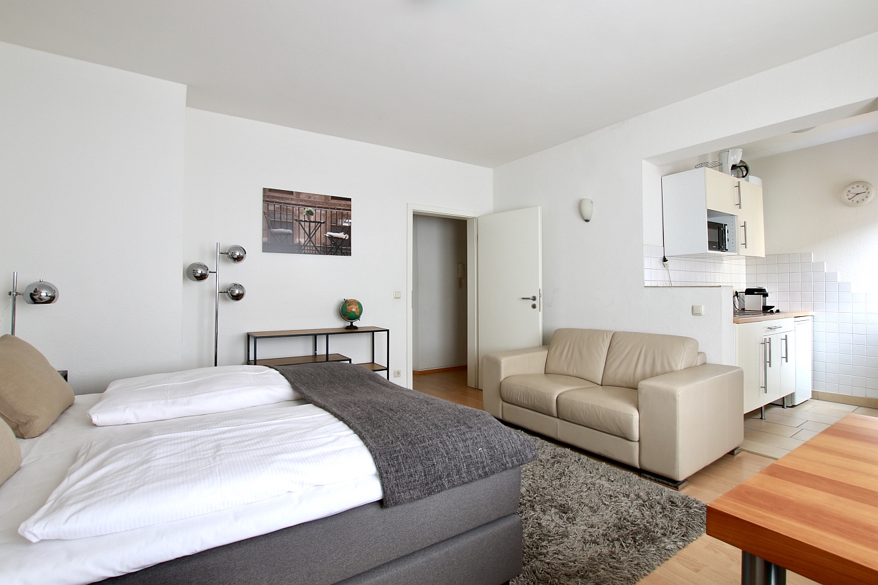 Living/bedroom with a new box-spring bed 1.80m, bed linen and towels included, cleaning service possible at an extra charge, WiFi internet access incl., minimum term of lease 2 months, shorter rental period on request, plus final cleaning 180,00 €