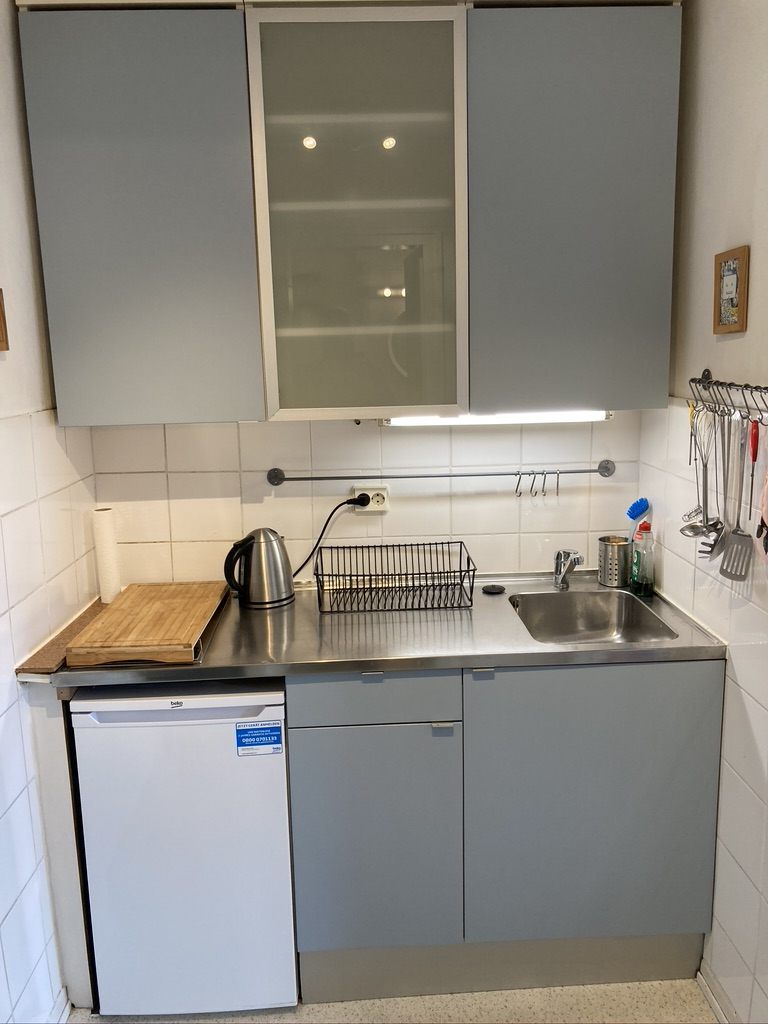 living / bedroom with queen-size bed 1,40 m, bed linen and towels available, incl. free WiFi internet access, pets not allowed, non-smoking, max. 1 person, minimum term of lease 6 months