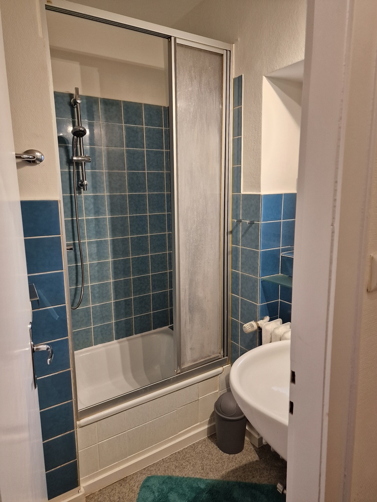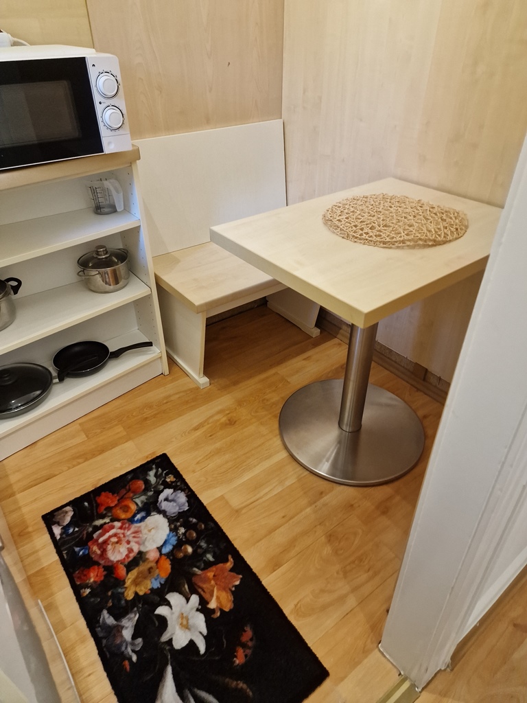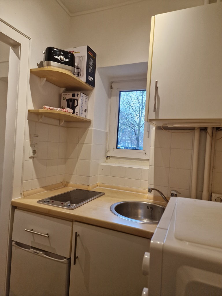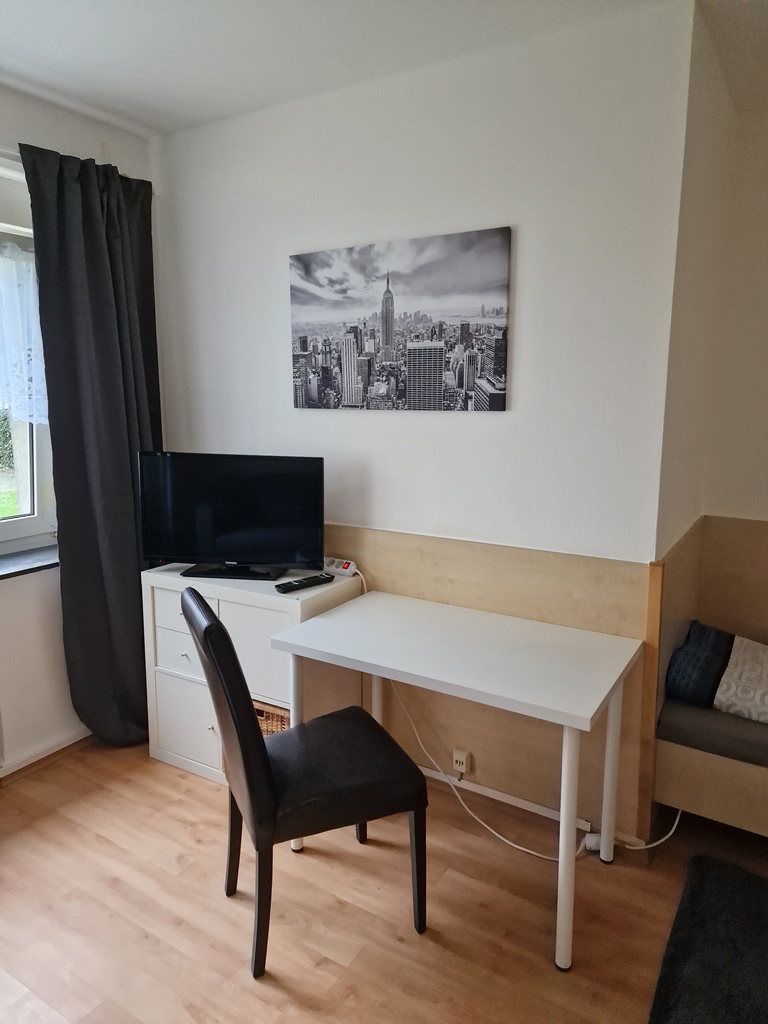 Living / bedroom with single bed 1.20 m, bed linen and towels available, incl. free internet access, pets not allowed, non-smoking, max. 1 person, minimum term of lease 7 months.