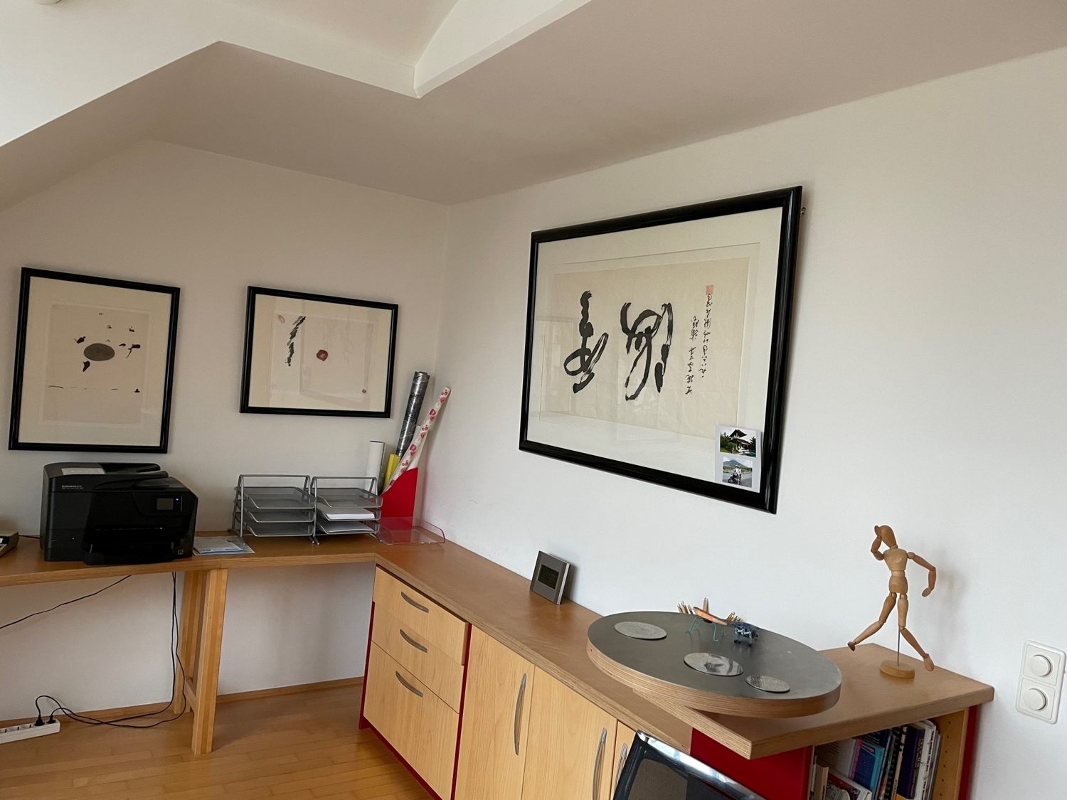 80 m² garden with terrace, fireplace with wood supply, living room with dining area, 1 bedroom with double bed 1.60 m, 2nd bedroom with double bed 1.50 m, study, incl. Wifi Internet access, wellness area with sauna, shower and fitness equipment, bed linen towels available, separate home office area (19 sqm) can be rented for an additional fee, non-smoking, pets not allowed, max. 4 persons, minimum rental period 6 months