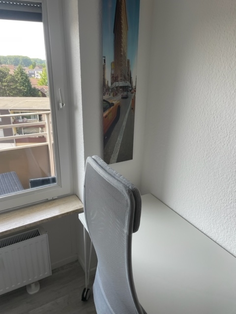 Balcony with far view, living room, bedroom with franz. Bed 1.60m, guest room with single bed 1.00m, bed linen and towels available, incl. WLAN internet access, pets not allowed, non-smokers, max. 3 persons, rent is for 2 persons. More persons and rent upon request, minimum rental period 3 months.