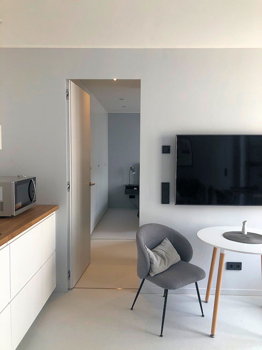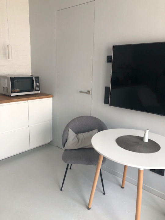 • New, modern and high-quality furnished, screed floor with underfloor heating, floor-to-ceiling windows, fitted kitchen with microwave and dishwasher, bathroom with showe and window, WIFI internet access, samt tv, bluetooth spreaker and Alexa, separated room with washing machine and dryer