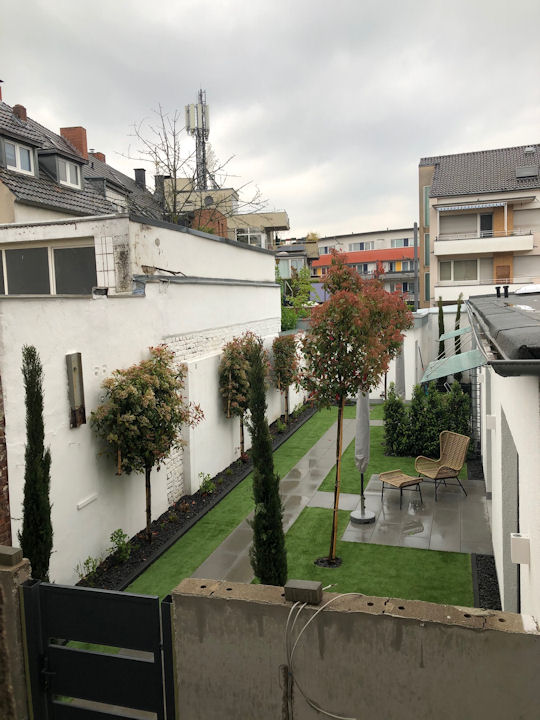 furnished terrace, in garden atrium, living/dining area, bedroom with boxspring bed 1,60m and air conditioning, high quality bed linen and towels available, cleaning service (incl. laundry) optional by arrangement, incl. WLAN internet connection. Garage parking space about 250 m away for an extra charge optional, good parking facilities in front of the house. Animals not allowed, non-smoking apartment, rent for 1st person, 2nd person will be charged an extra fee of 30,00 €, minimum rental period 6 months.
