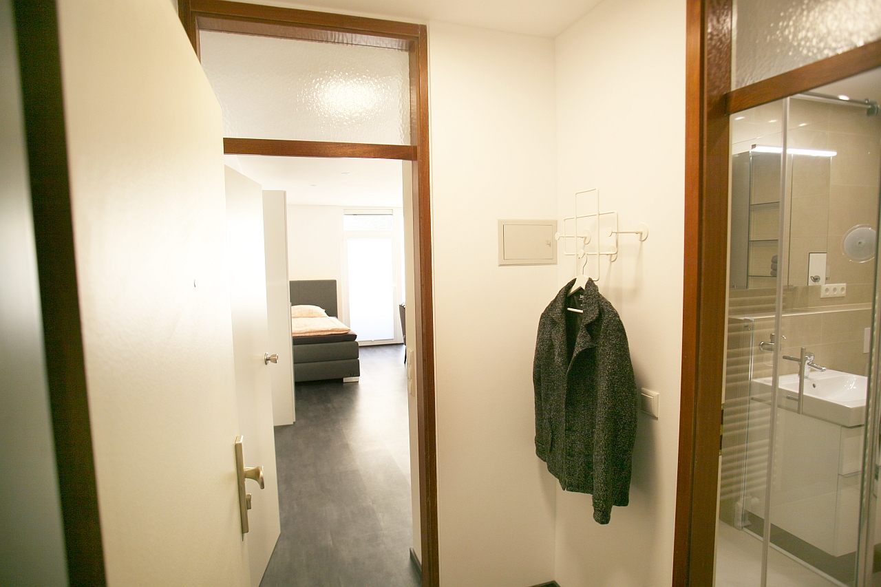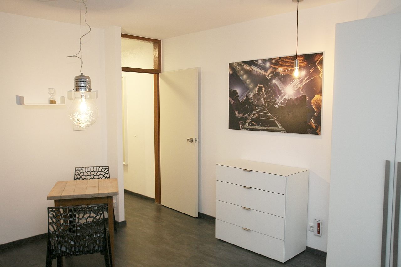 balcony, living room and bedroom with boxspring bed 120x200cm, anteroom, bed linen and towels available,, pets not allowed, non-smokers, max.1 person, underground parking space for an extra charge, minimum rental period 6 months.