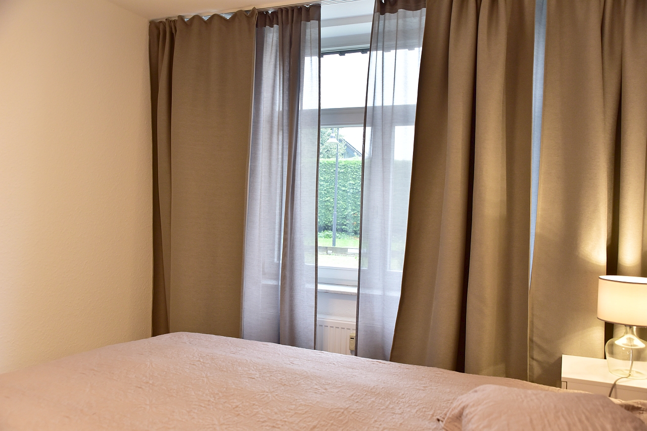 Use of garden, living-dining area with integrated kitchen, bedroom with box-spring bed 1.80x2m, desk and TV, additional utility room, incl. WIFI internet access, bed linen and towels available, incl. parking space, pets not allowed, not suitable for children, non-smoking, max. 2 persons, minimum rental period 6 months