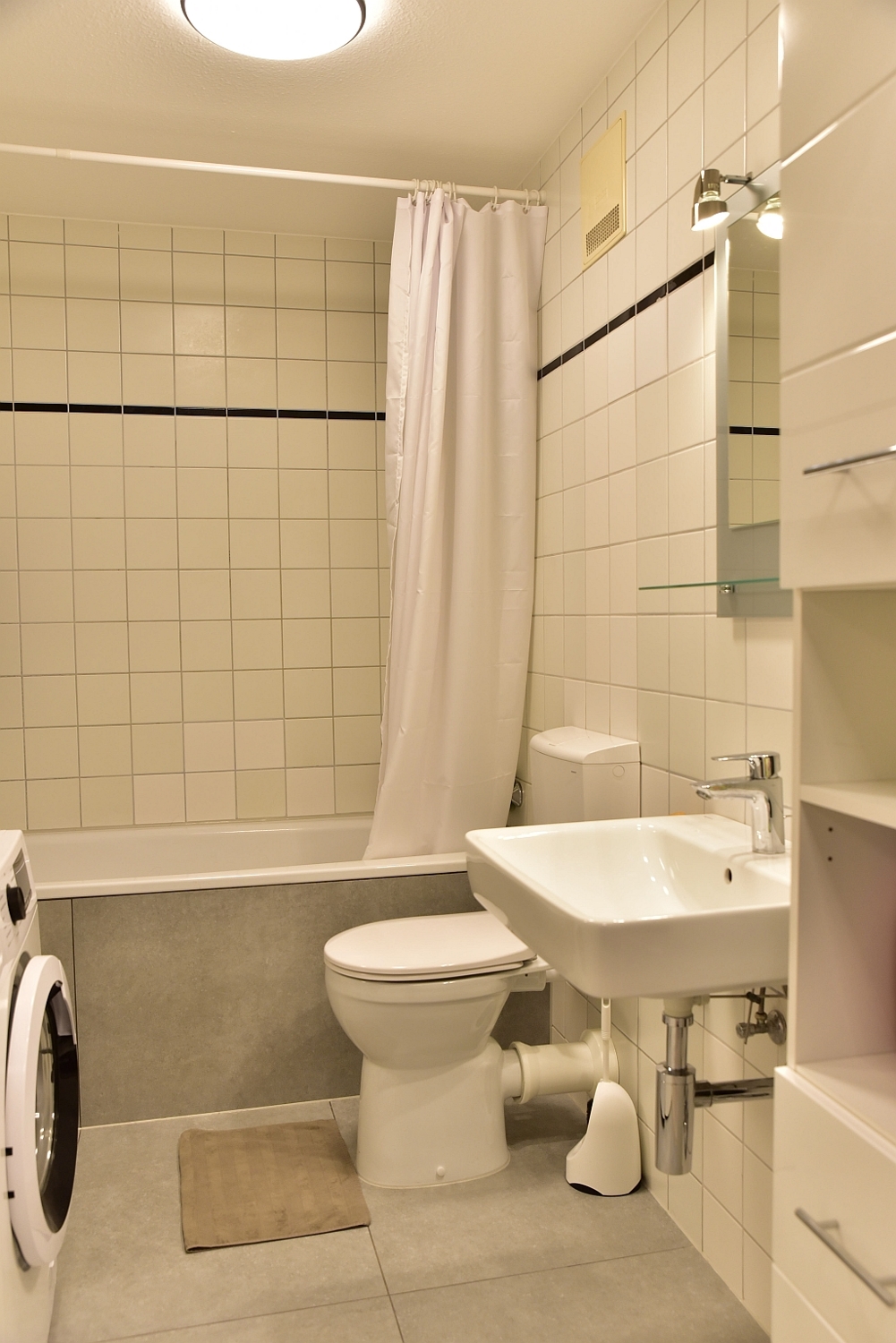 High-quality, new furnishings, vinyl and tile flooring, fully equipped, integrated fitted kitchen with dishwasher and oven, daylight bathroom with tub and shower, satellite TV, WIFI internet access, flat screen TV, washing machine and dryer in the laundry room, air conditioning.