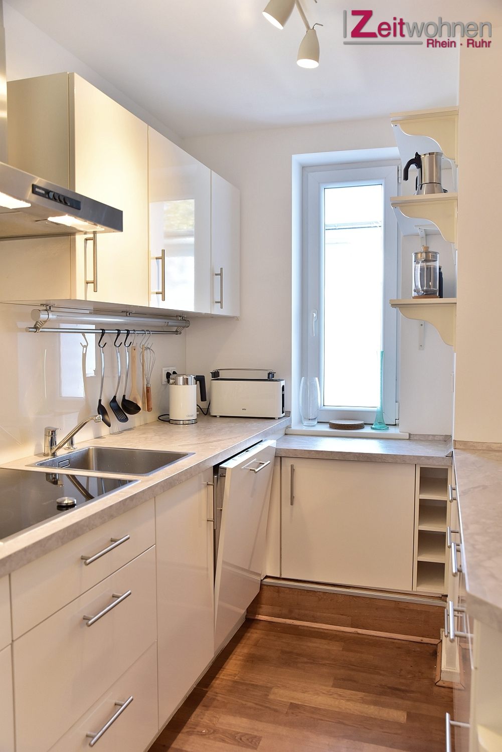 Modern furnishings, parquet flooring, open, fully equipped fitted kitchen with bar counter, freezer, dishwasher, daylight bathroom with bathtub and shower, Smart TV, WiFi Internet access 1000Mbit, washing machine and dryer