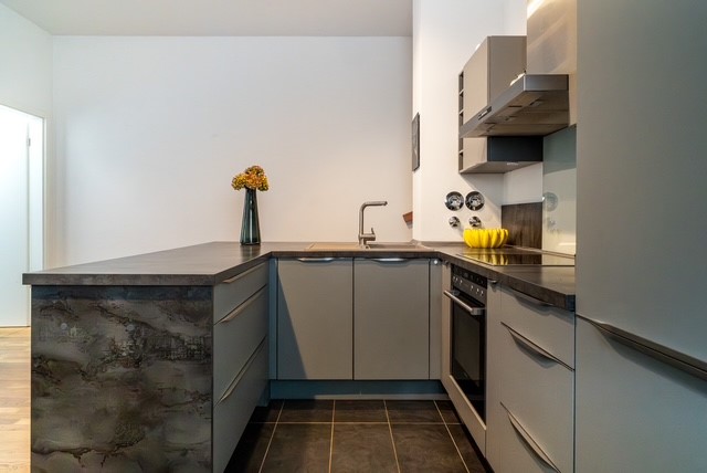 Modern furnishings, real wood parquet flooring, underfloor heating, fully equipped kitchen with dishwasher and coffee machine, bathroom with natural light and bathtub, cable TV, high-speed WiFi internet access (1000 Mbit), bicycle storage room, washing machine and dryer in the laundry room.