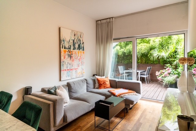 Private garden, balcony, bedroom with 1.80 m box spring bed, including WiFi internet access, including weekly cleaning, towels, bed linen, and dishes provided, including underground parking space, pets not allowed, non-smoking, minimum rental period 3 months.