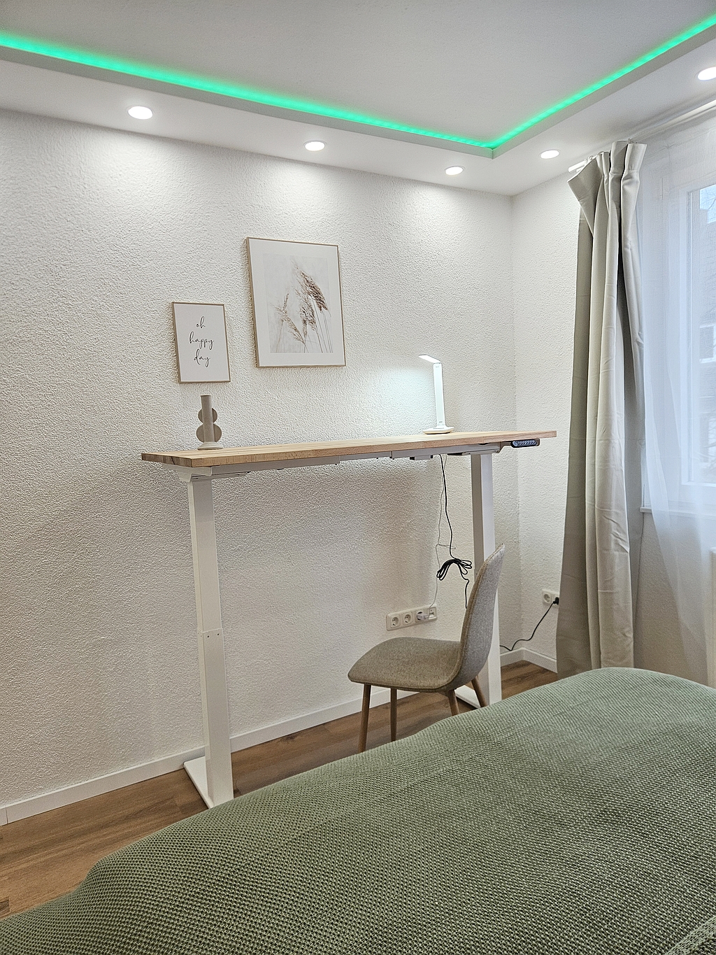 Balcony, living room, bedroom with double bed 1.60m, incl. WiFi internet access, pets not allowed, non-smoking, max. 2 persons, rental price is for 1 person; multiple occupancy on request Minimum rental period 3 months