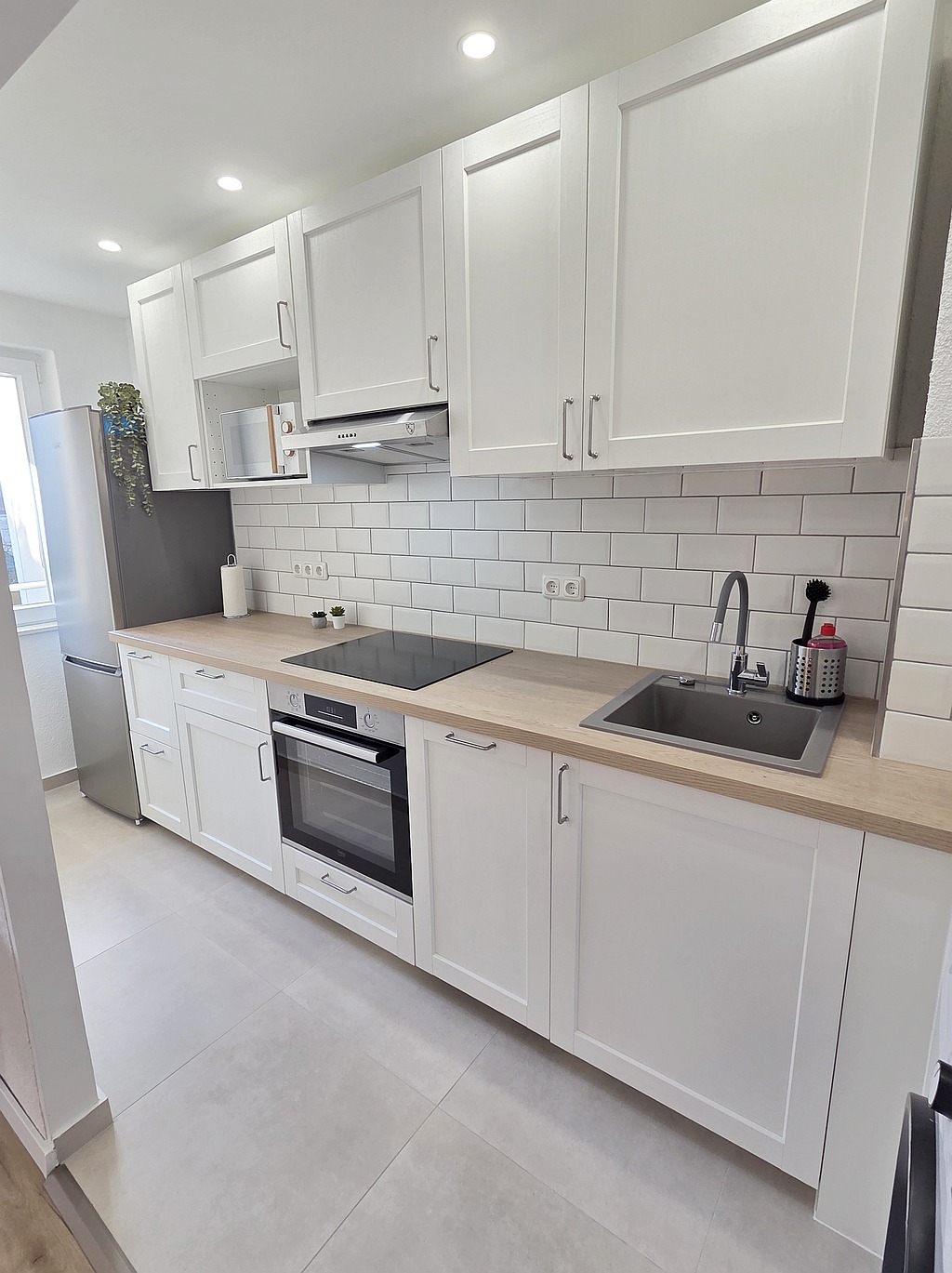 Modern furnishings, laminate and tiled floor, fully equipped fitted kitchen with dishwasher and microwave, shower room, smart TV, WiFi internet access, washing machine in the kitchen