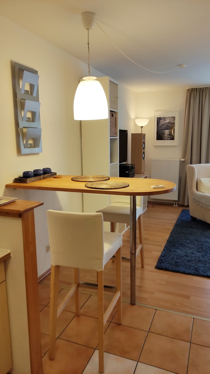 Garten zur Mitbenutzung, Terrasse zur alleinigen Nutzung, Wohnzimmer mit Schlafsofa und Arbeitsplatz, Schlafzimmer mit franz. Bett 1,40 m. Bettwäsche und Handtücher vorhanden. Glasfaser-Highspeed-Internetanschluss inkl. PKW-Stellplatz auf Anfrage.