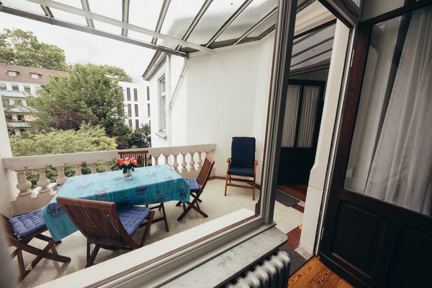 großer Balkon zur Gartenseite, Wohnzimmer mit kleinem Balkonvorsprung zur Straße, Schlafzimmer mit Doppelbett 2,00m, Gästezimmer mit Arbeitsbereich, Schlafzimmer sowie Badezimmer sind über den Hausflur zugänglich (bei Häusern dieses Jahrgangs üblich), Bettwäsche und Handtücher vorhanden, Tierhaltung nicht gestattet, Nichtraucher, max. 2 Personen, Mindestmietdauer 3 Monate