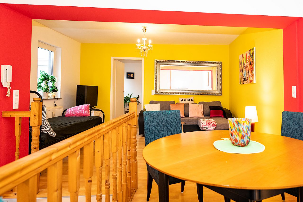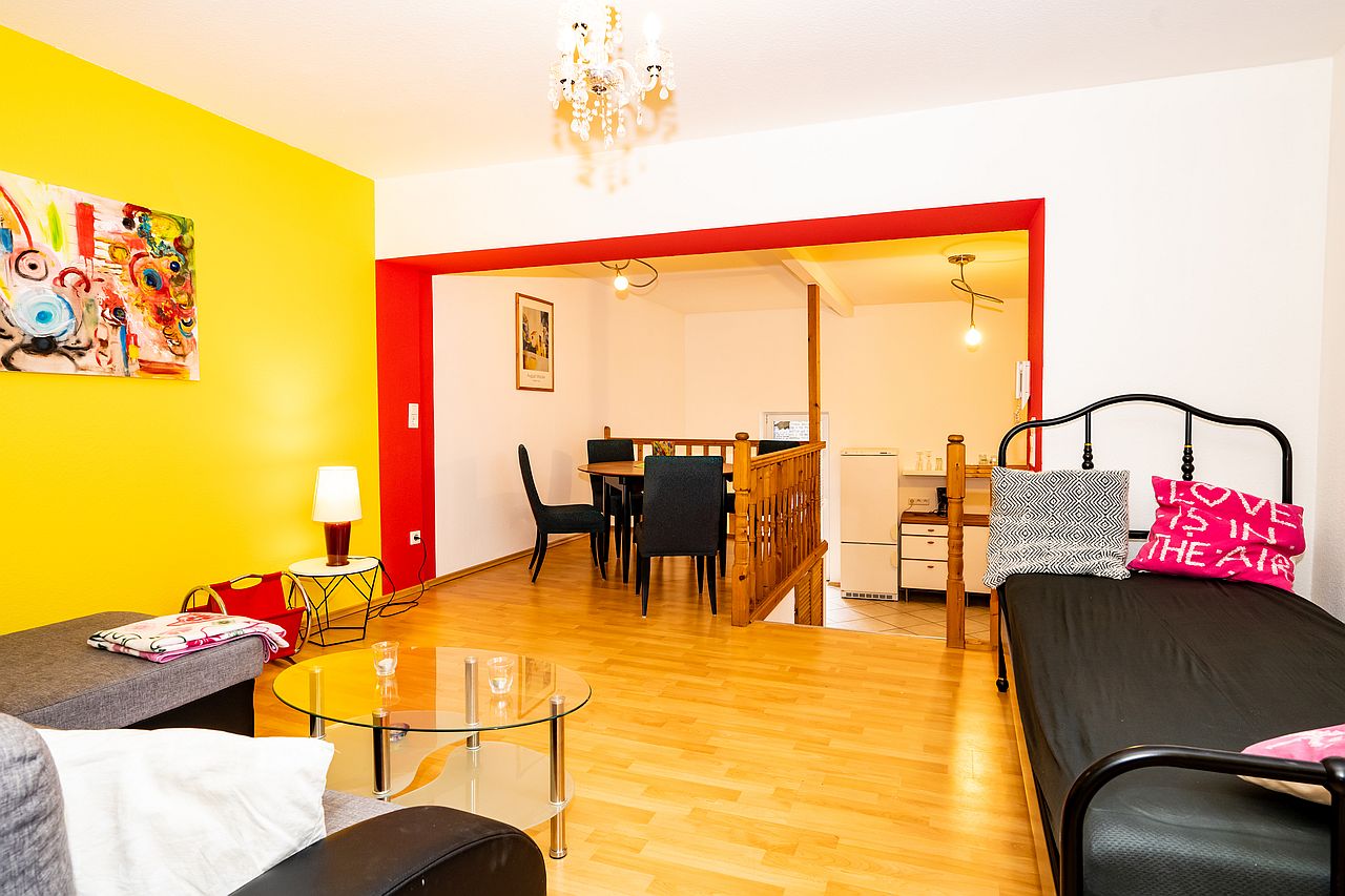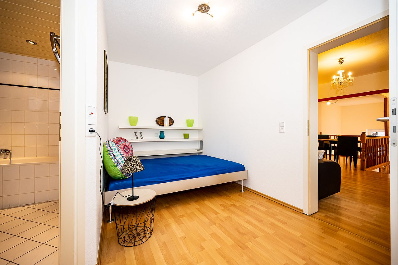 Garten, Balkon, Wohnzimmer/Essbereich mit Schlafsofa und Einzelbett 100cm, Schlafzimmer mit Doppelbett 1,80m, Bettwäsche und Handtücher vorhanden, inkl. WLAN Internetanschluss, Nichtraucher, Haustiere nicht gestattet, max. 4 Personen, für Familien und Paare geeignet, Mietpreis gilt für 2 Personen, Jede weitere Person gegen Aufschlag, Mindestmietdauer 6 Monate