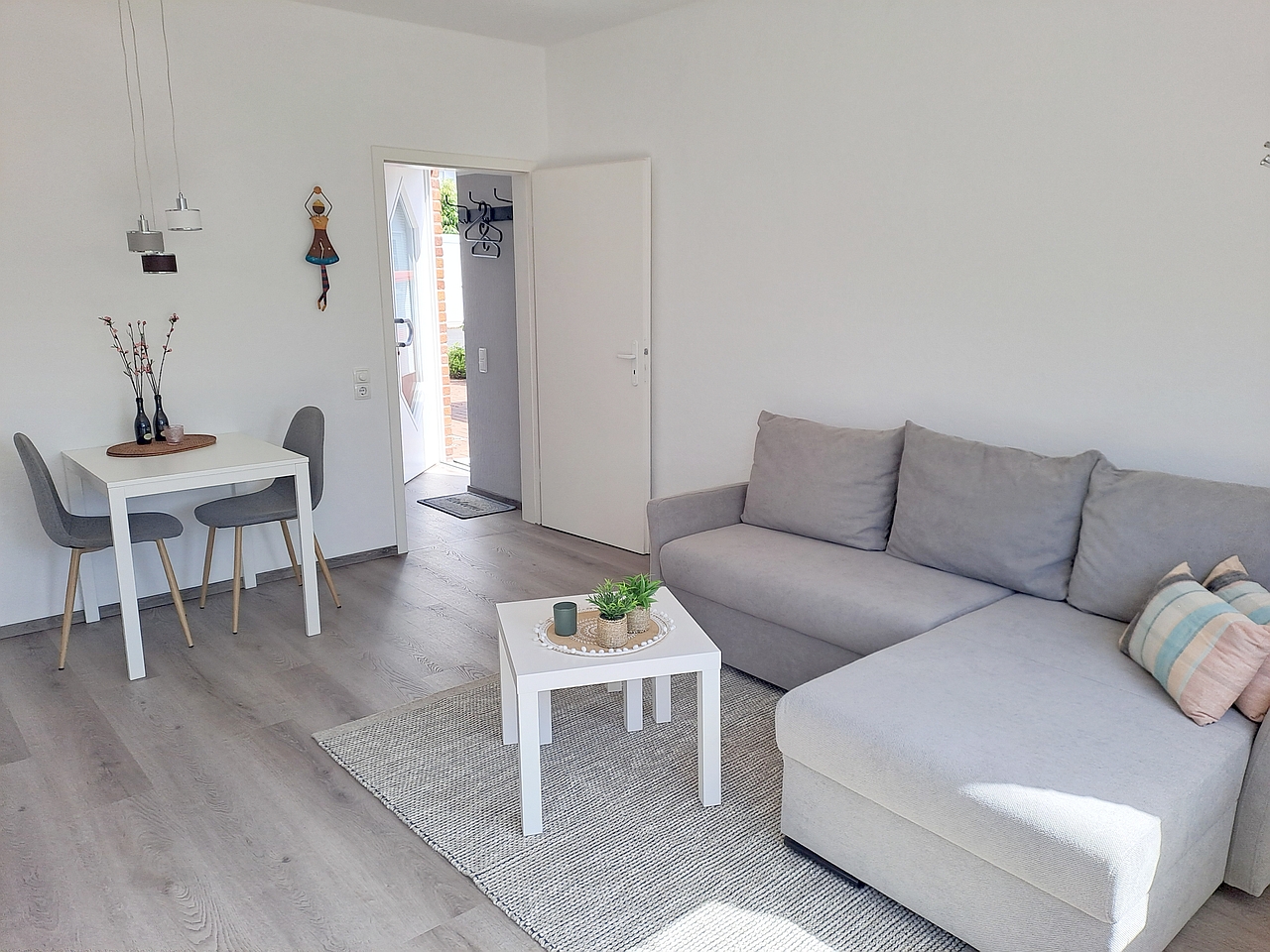 Südterrasse, Wohnzimmer, Schlafzimmer mit Bett 1,40m, Bettwäsche und Handtücher vorhanden, inkl. WLAN Internetanschluss, Tierhaltung nicht gestattet, Nichtraucher, gute Parkmöglichkeiten vor dem Haus, max. 1 Person, Mindestmietdauer 3 Monate