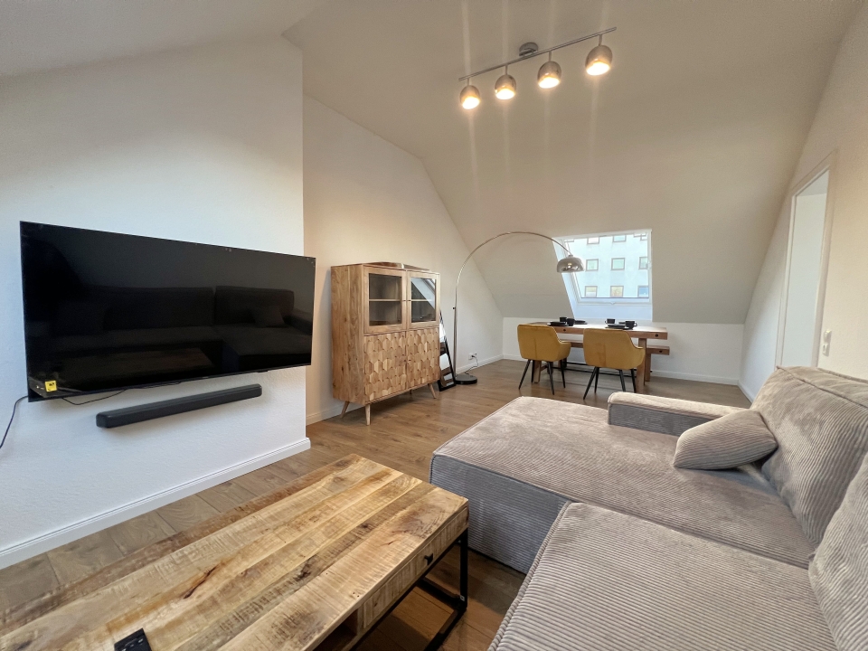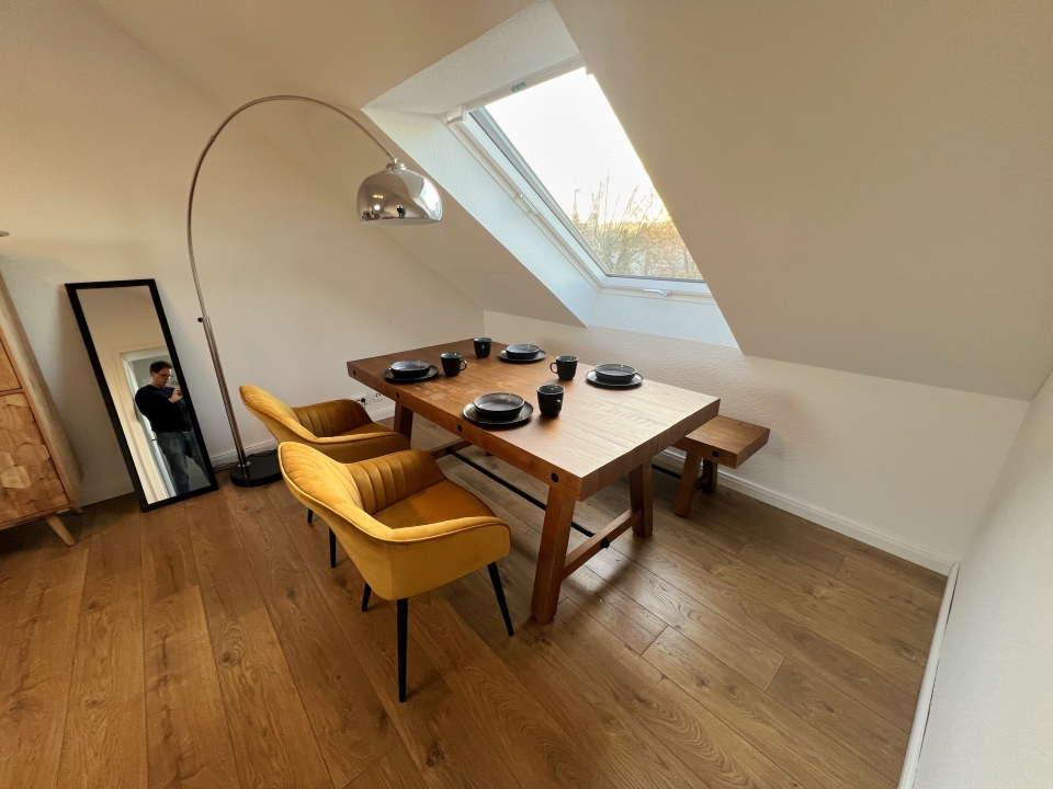 Wohnzimmer mit Couch und Essbereich, Schlafzimmer mit Doppelbett 1,80 m x 2,00 m. Abgeschlossener Fahrradraum im EG, Bettwäsche und Handtücher vorhanden. Haustiere nicht gestattet, Nichtraucher, Parkplatz optional nach Verfügbarkeit und Aufpreis, max. 2 Person, Mietpreis gilt für 1. Person. Mindestmietdauer 6 Monate, Miete inkl. Nebenkosten: 1500,00 pro Monat, inkl. Strom, inkl. Heizung, inkl. W-LAN Internetanschluss. Endreinigung 150 €