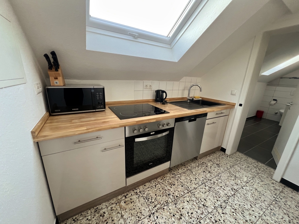Moderne Möblierung, Küche voll ausgestattet: Backofen, Induktionskochfeld, Spülmaschine, Mikrowelle. Tageslicht-Dusche, Kabel-TV, Smart-TV, W-LAN Internetanschluss. Waschmaschine in der Waschküche im Keller.
