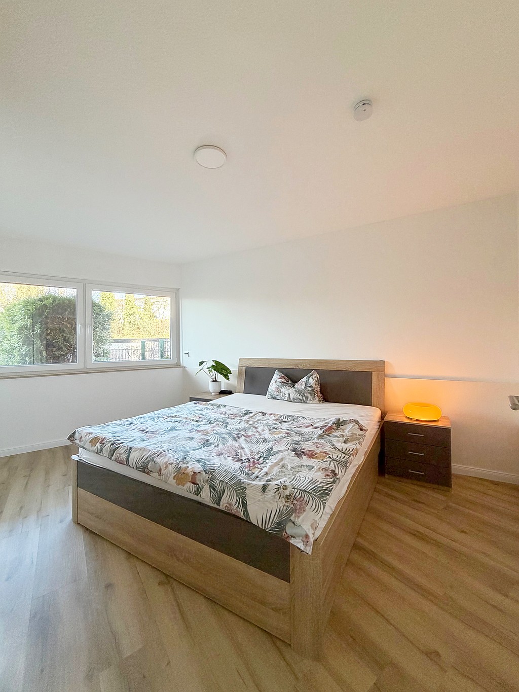 Große Terrasse und Zugang zum privaten Garten. Stellplatz und Fahrradraum stehen zur Verfügung. Wohn-Essbereich mit Terrassenzugang und Schreibtisch. Schlafzimmer mit Doppelbett 1,60 m × 2,00 m. Handtücher und Bettwäsche vorhanden, inkl. WLAN Internetanschluss, Haustiere nach Absprache. Nichtraucher erwünscht, max. 3 Personen, Mindestmietdauer 3 Monate, Mietpreis gilt für 1. Person. Miete inkl. Nebenkosten: 1500 pro Monat, plus. Strom, inkl. Heizung. Endreinigungsgebühr nach Aufwand.