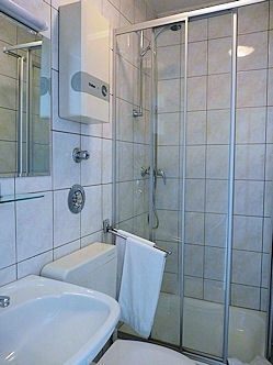 Badezimmer mit Dusche, Flatscreen, Kabel-TV, WLAN-Internetanschluss- Befeuerung: Fernwärme