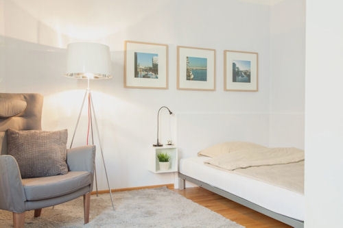 Dachterrasse zur Gemeinschaftsnutzung, Wohn-/ Schlafzimmer mit französischem Bett 1,40 m, Bettwäsche und Handtücher vorhanden, Tierhaltung nicht gestattet, Nichtraucher, optional 14-tägigem Reinigungsservice, inkl. Internetanschluss, max. 1 Person, Mindestmietdauer 3 Monate