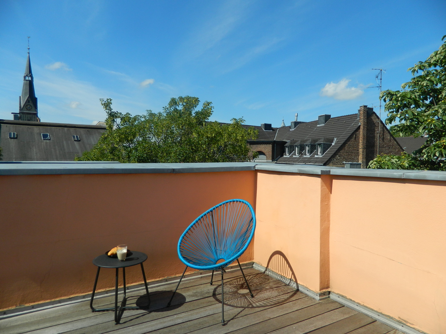 Belgisches Viertel: Trendy möblierte Altbauwohnung mit Dachterrassen-Nutzung