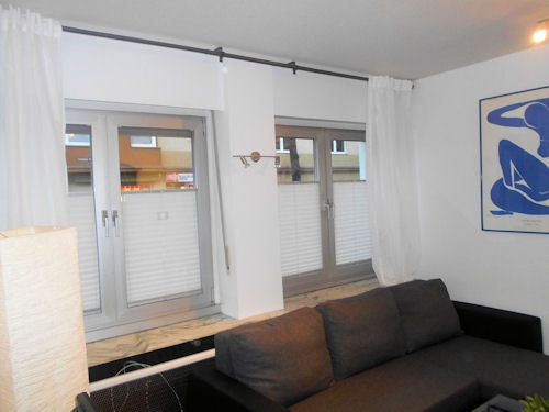 Wohnzimmer mit Schlafsofa, Schlafzimmer mit franz. Bett 1,40 m, Bettwäsche und Handtücher vorhanden, inkl. WLAN-Internetanschluss, Tierhaltung nicht gestattet, Nichtraucher, kindgerecht, max. 2 Personen, Mindestmietdauer 7 Monate