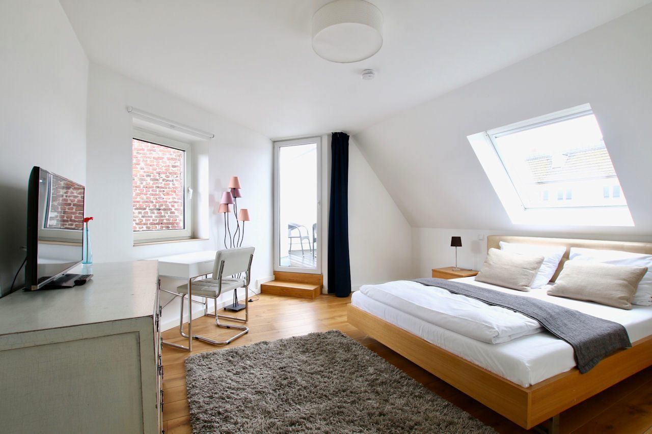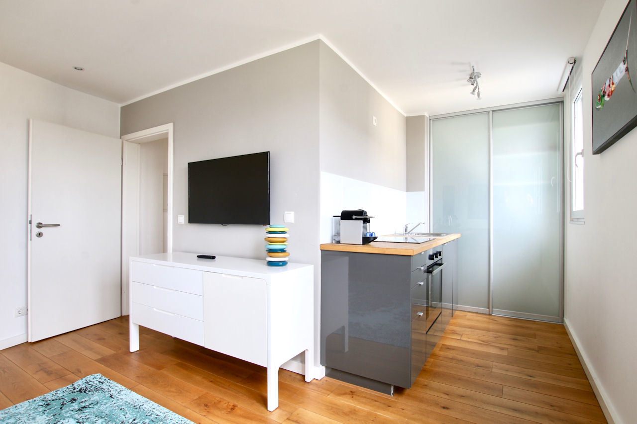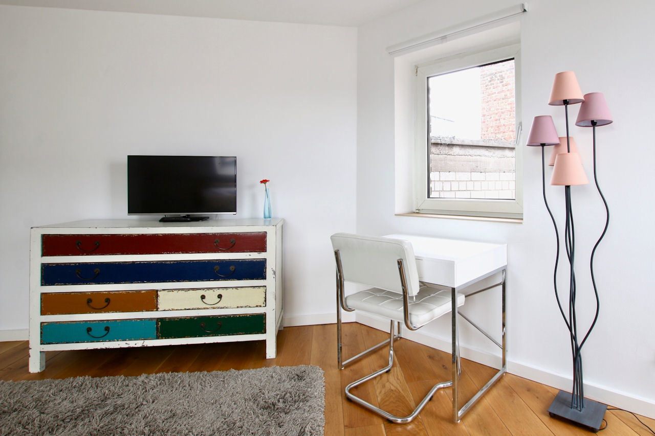 Wohnzimmer mit Schlafsofa, Schlafzimmer mit Doppelbett 1,60 m, Bettwäsche und Handtücher vorhanden, inkl. WLAN-Internetanschluss, Reinigungsservice gegen Aufpreis möglich, max. 2 Personen, Mindestmietdauer 2 Monate