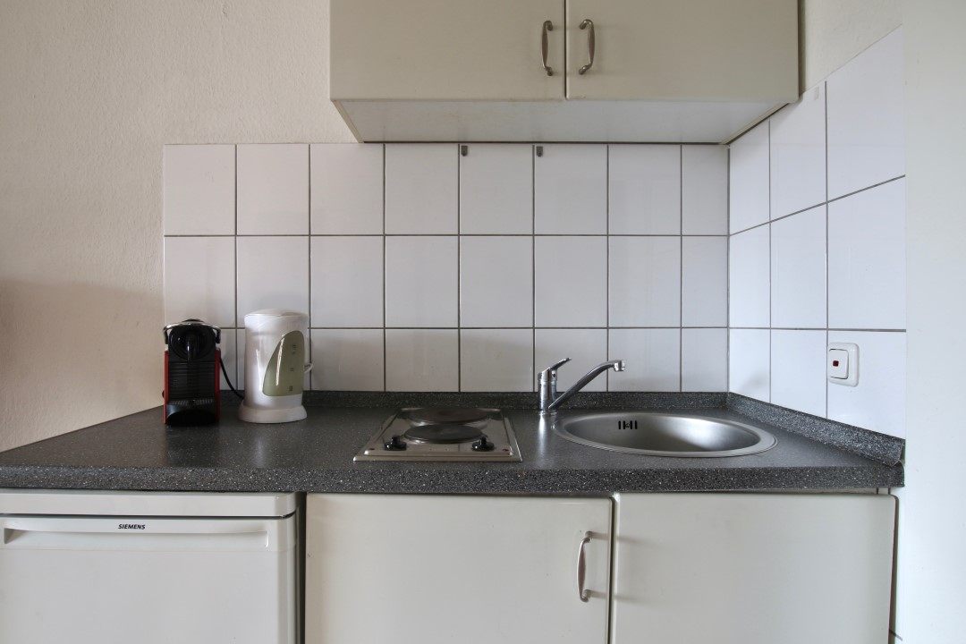 Balkon, Wohn-/ Schlafzimmer mit Doppelbett 1,40 m, Bettwäsche und Handtücher vorhanden, Tierhaltung nicht gestattet, Rauchen nicht gestattet, WLAN-Internetanschluss inkl., Reinigungs- und Wäscheservice gegen Aufpreis optional, Mindestmietdauer 6 Monate,