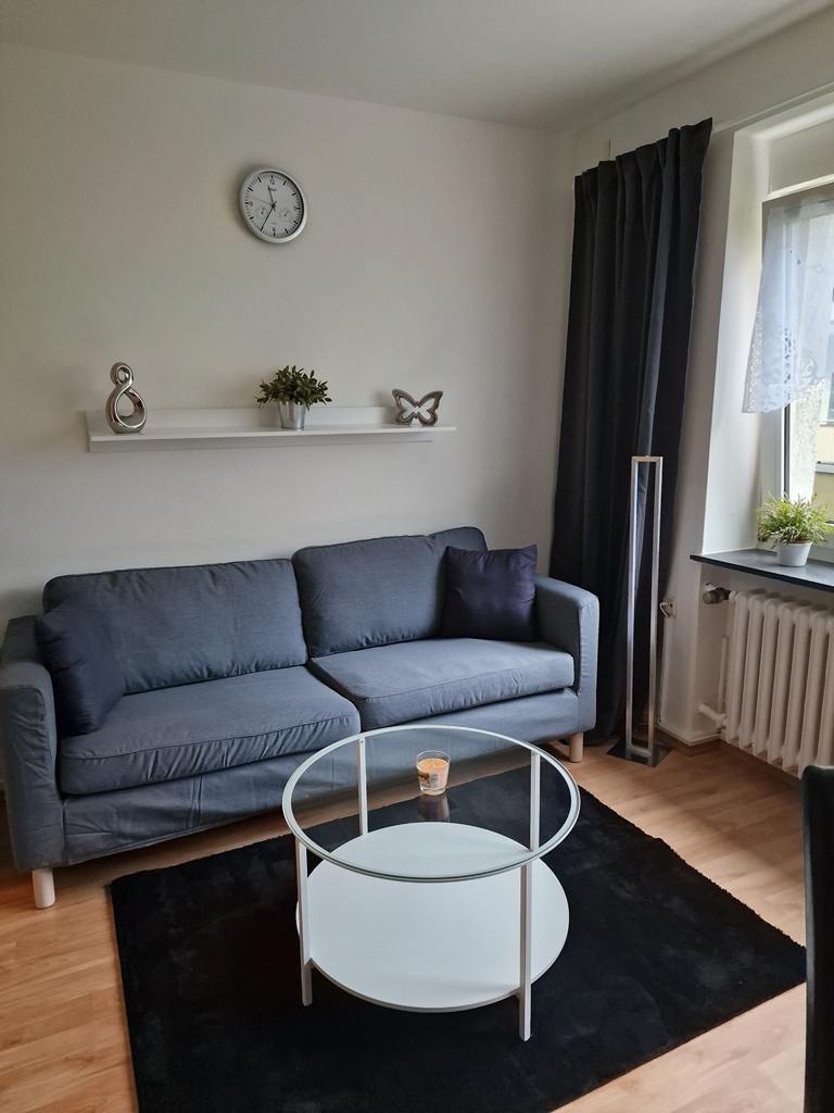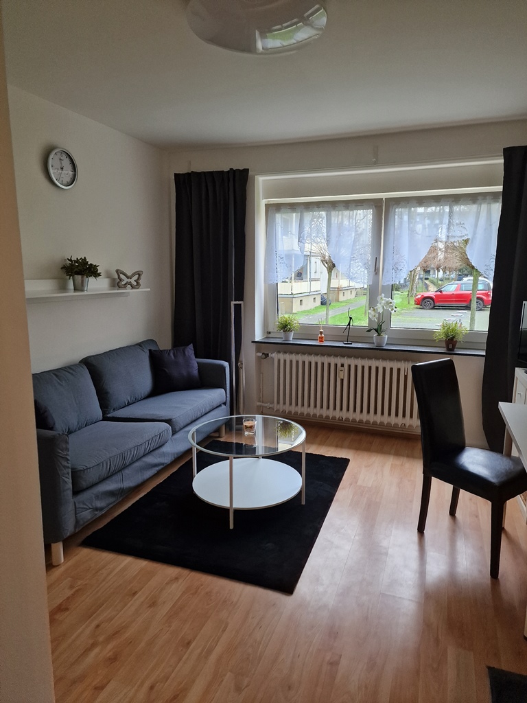 • zeitlose Möblierung, Laminatboden, integrierte Singleküche mit Mikrowelle, Duschbad, Kabel-TV, Internet, Waschmaschine und Trockner im Keller