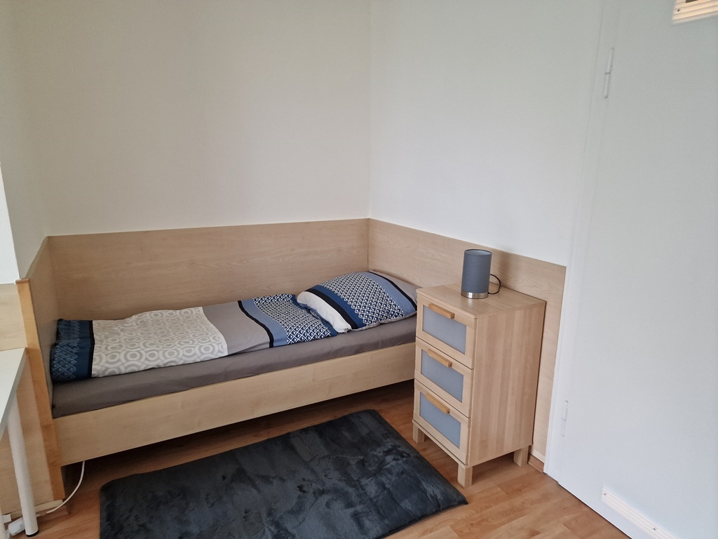 Wohn-/ Schlafzimmer mit Einzelbett 1,20 m, Bettwäsche und Handtücher vorhanden, inkl. kostenlosem Internet, Tierhaltung nicht gestattet, Nichtraucher, max. 1 Person, Mindestmietdauer 7 Monate