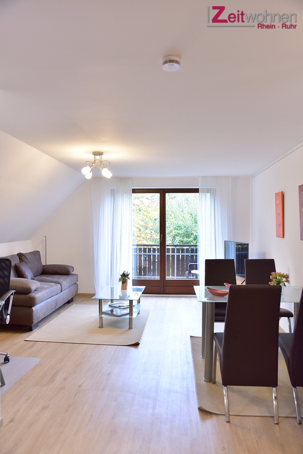 Balkon, Wohn/Esszimmer, Schlafzimmer mit franz. Bett 1,40 m × 2,00 m. Bettwäsche und Handtücher vorhanden, inkl. Internet, Tierhaltung nicht gestattet, Nichtraucher, gute Parkmöglichkeiten, Mietpreis gilt für 1 Person, maximal 2 Personen, 2. Person auf Anfrage, Mindestmietdauer 6 Monate–
