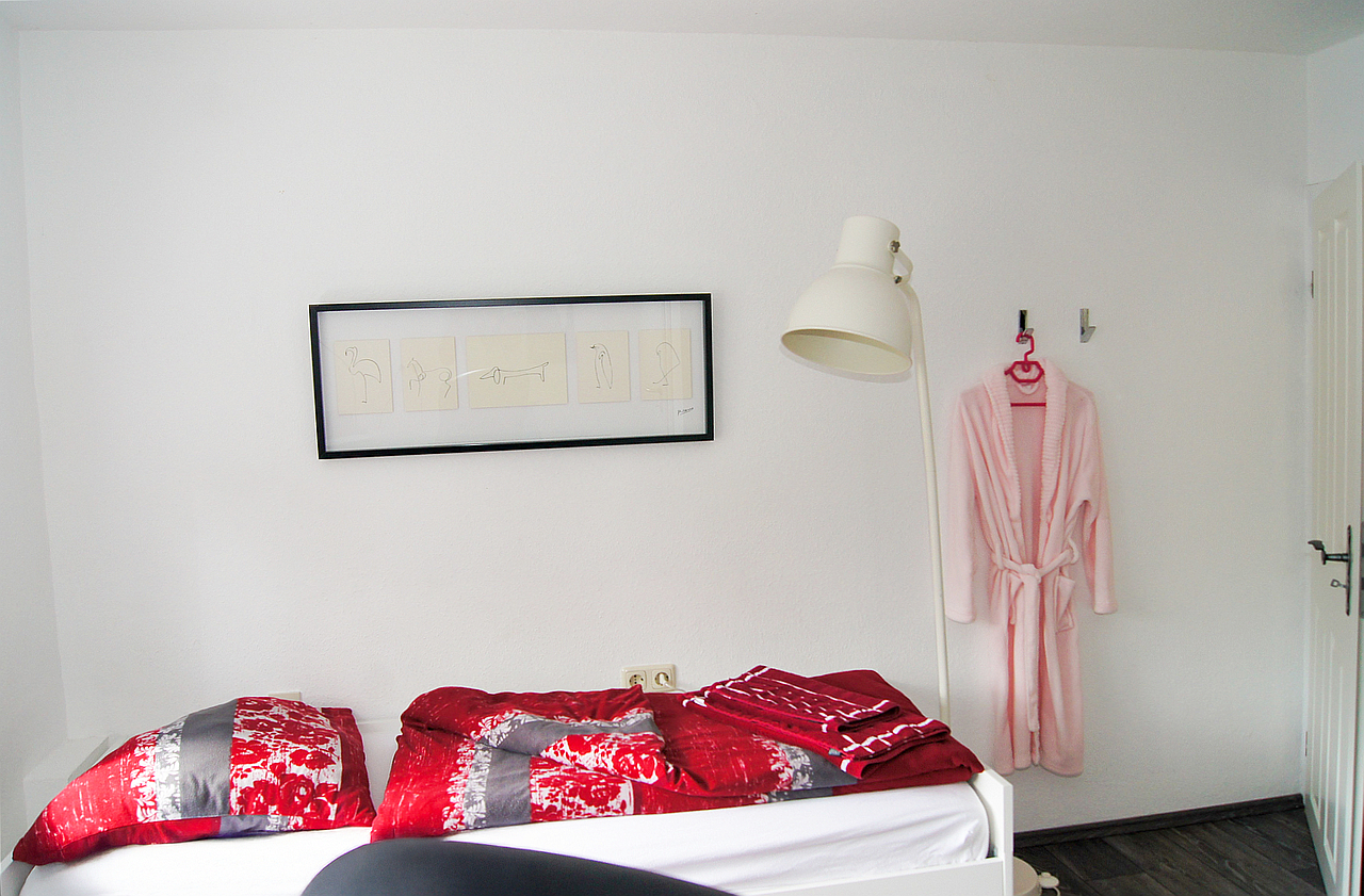Großer Garten, Terrasse, Balkon, Wohnzimmer mit Kamin, 1. Schlafzimmer mit Doppelbett 1,80 m, 2. Schlafzimmer mit Einzelbett 0,90 m, 3. Schlafzimmer mit Schlafsofa 2,00 m, Bettwäsche und Handtücher vorhanden, inkl. WLAN Internetanschluss, inkl. PKW-Stellplatz, für Familien mit Kinder geeignet, Nichtraucher erwünscht, Haustiere nicht erlaubt, max. 5 Personen, Mindestmietdauer 3 Monate,