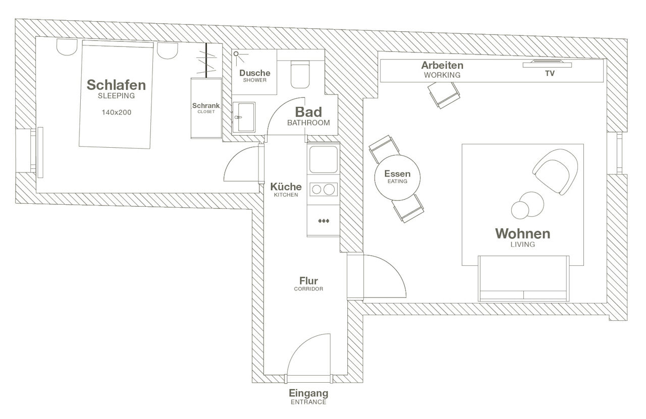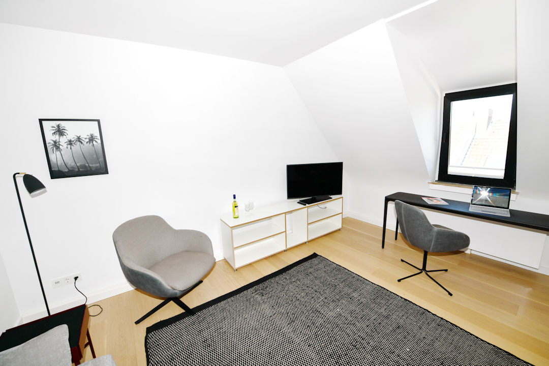 • moderne Möblierung, Parkett , Bulthaup Singleküche mit Mikrowelle und Kapsel-Kaffeemaschine im Eingangsbereich, Duschbad, Kabel- TV, W-Lan Internetanschluss mit 300 Mbit/s., hochwertige Hifi-Anlage, Safe, eigener Speicherraum im Keller, Münz- Waschmaschine und – Trockner im Keller