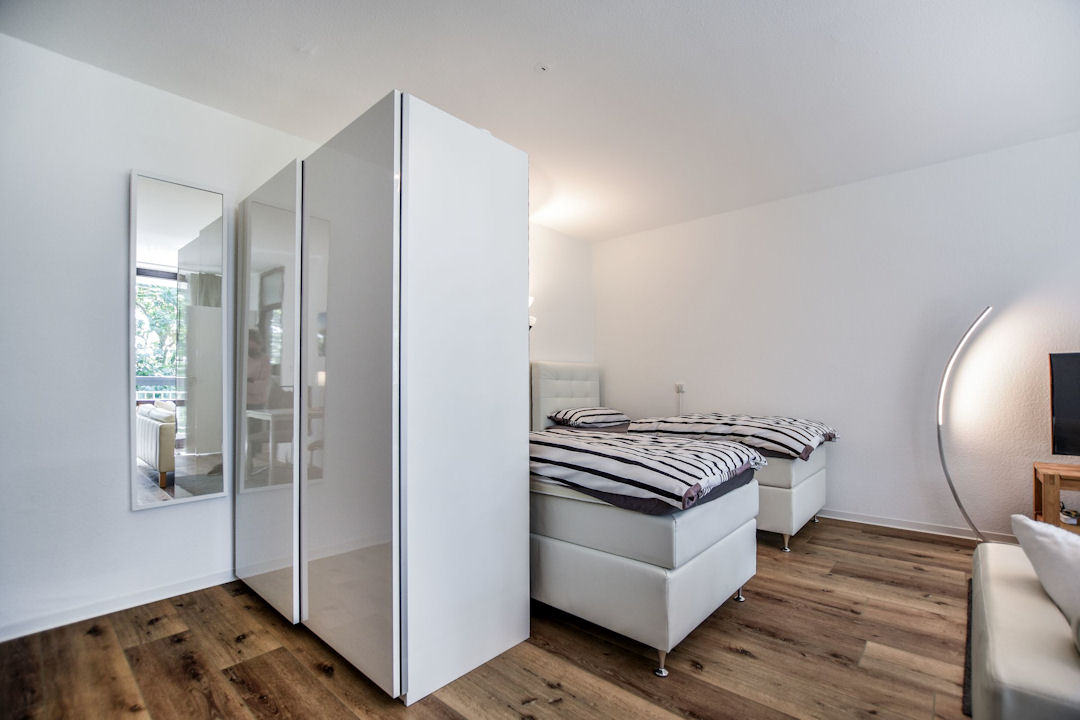 großer Balkon, Wohn-/ Schlafzimmer mit 2 Boxspringbetten á 1,00m x 2,00m, Bettwäsche und Handtücher vorhanden, inkl. WLAN Internetanschluss, kostenlose Parkplätze in 200m Entfernung, Tierhaltung nicht gestattet, Nichtraucher, max. 2 Personen, Mindestmietdauer: 6 Monate