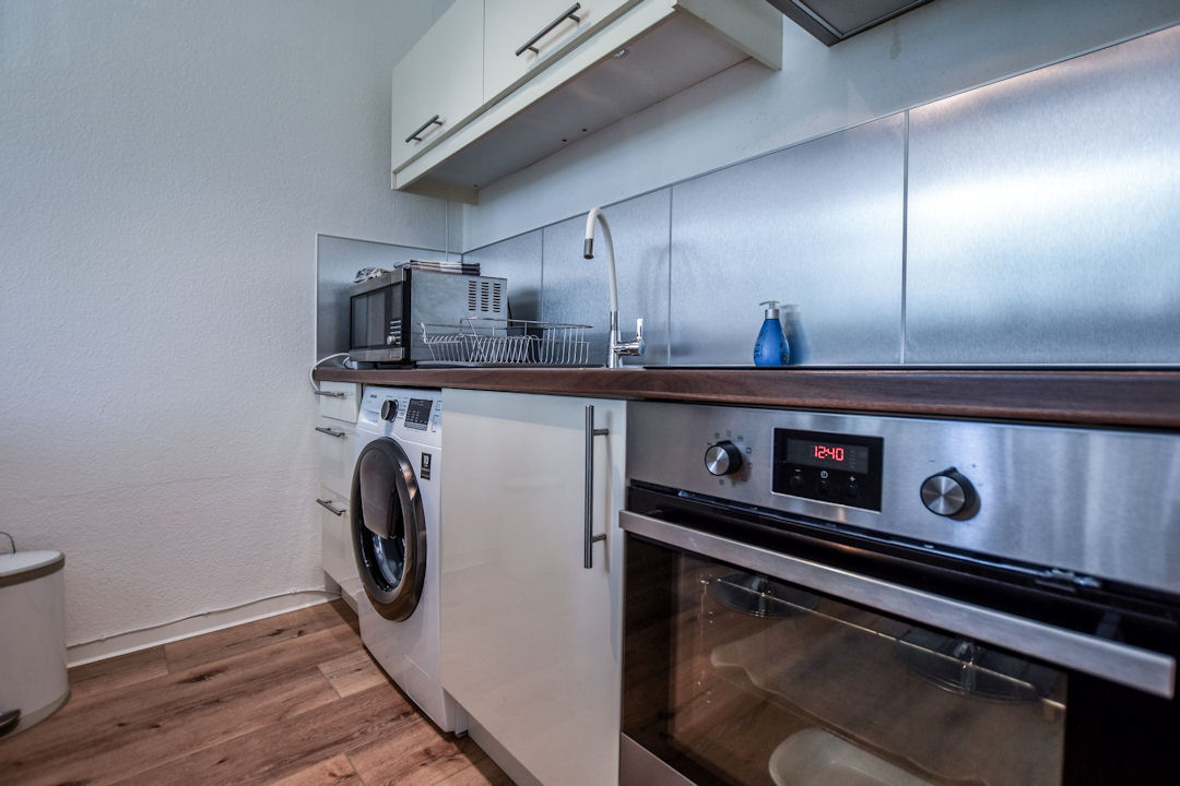 modern Möblierung, Parkett, separate Einbauküche mit Mikrowelle, Duschbad, Kabel-TV, Smart TV, WLAN Internetanschluss, Waschmaschine in der Küche