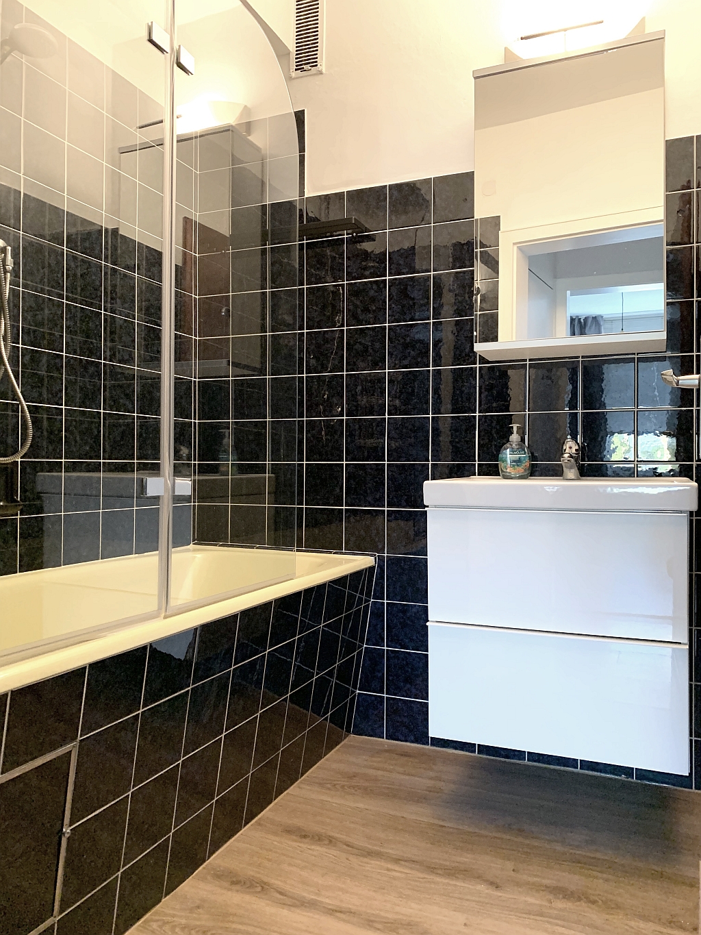 zeitlose Möblierung, Designboden, integrierte Einbauküche mit Spülmaschine und Mikrowelle, Duschbad, ink. WLAN Internetanschluss, Kabel-TV, Waschmaschine im Waschkeller