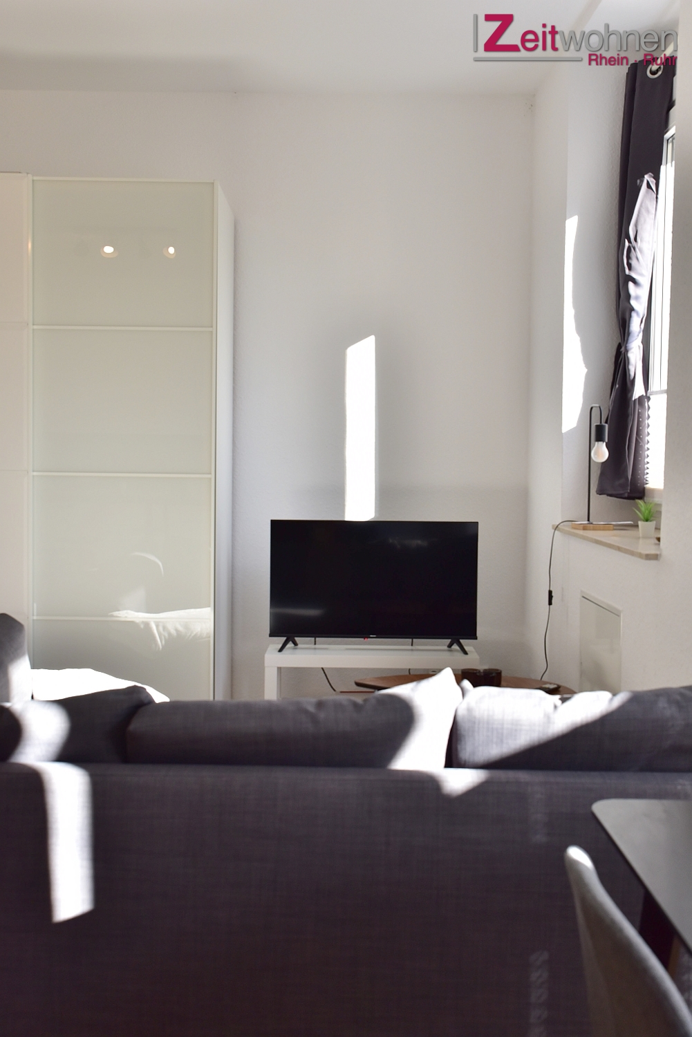 Wohnzimmer mit offener Küche, Schlafzimmer mit Doppelbett 1,60 m, Nichtraucher, Tierhaltung nicht gestattet, max. 2 Personen, Mietpreis gilt für eine Person; bei Mehrpersonenbelegung, Miete auf Anfrage, Mindestmietdauer 6 Monate.