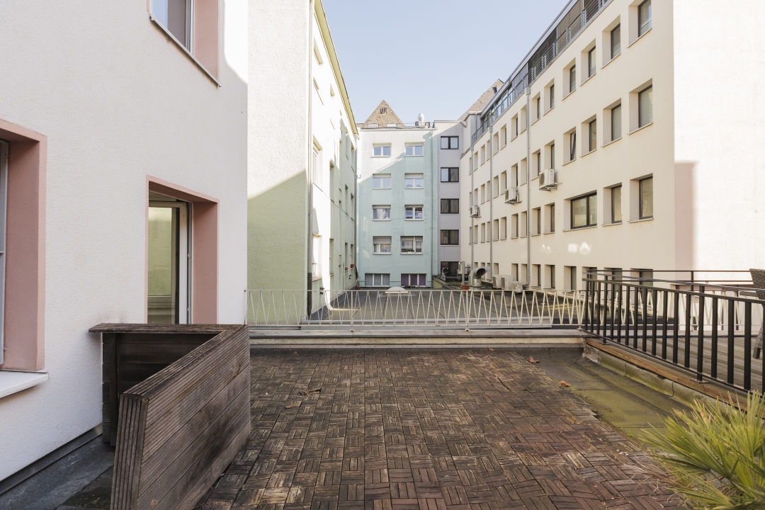 Terrasse, Wohnzimmer mit ausziehbarer Schlafcouch 1,40 m, Schlafzimmer mit Doppelbett 1,80 m, Bettwäsche und Handtücher vorhanden, PKW-Stellplatz kann in der Tiefgarage unter dem Heumarkt optional gegen Aufpreis angemietet werden. Tierhaltung nicht gestattet, Nichtraucher, max. 2 Personen, Mindestmietdauer 6 Monate
