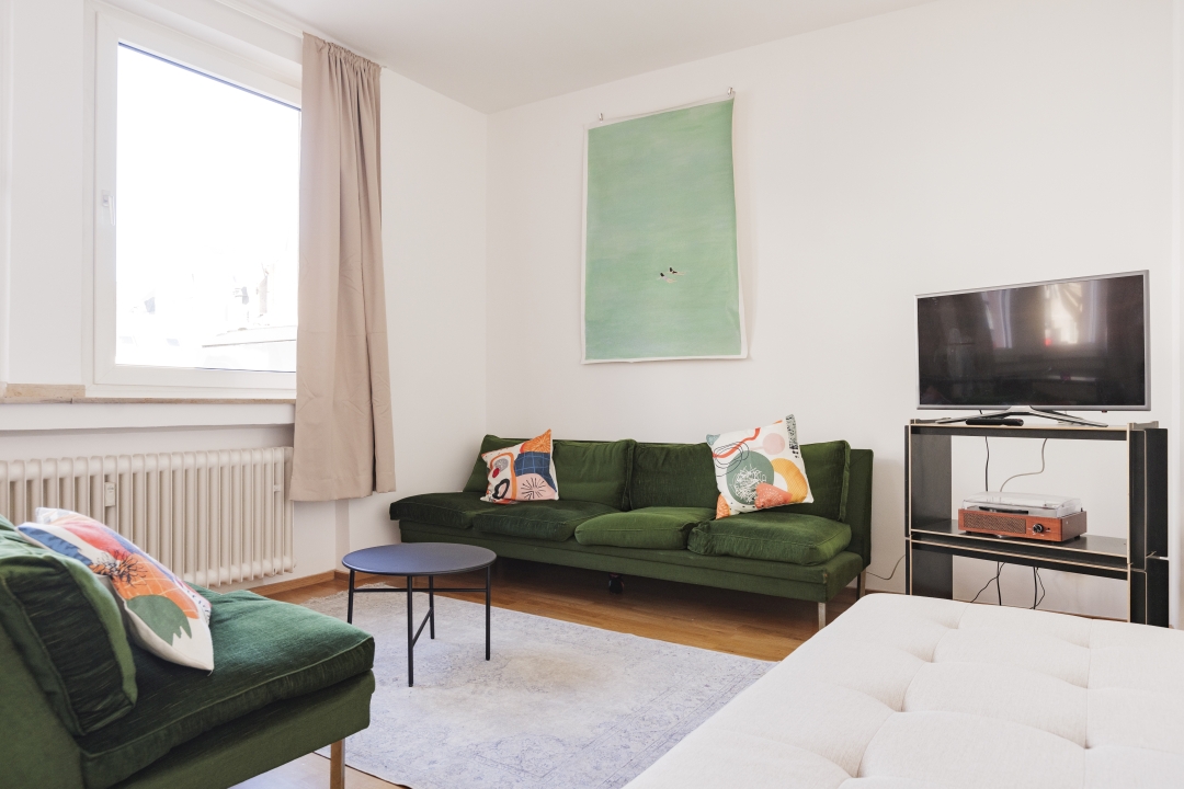 • moderne Möblierung, Parkett, vollausgestattete Einbauküche mit Ceranfeld und Backofen, Spülmaschine, Mikrowelle und Kaffeemaschine, Duschbad, Smart-TV mit Amazon Prime Video und Netflix Zugang (Mitgliedschaft muss eigenständig erfolgen), Klimaanlage, W-LAN Internetverbindung, Waschmaschine und Trockner in der Wohnung