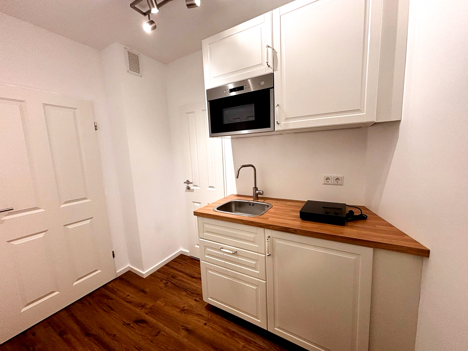 Wohn-/ Schlafzimmer mit Boxspring Bett 1,60 m, Bettwäsche und Handtücher vorhanden, Haustiere nach Vereinbarung, Nichtraucher erwünscht, max. 1 Person, Mindestmietdauer 6 Monate