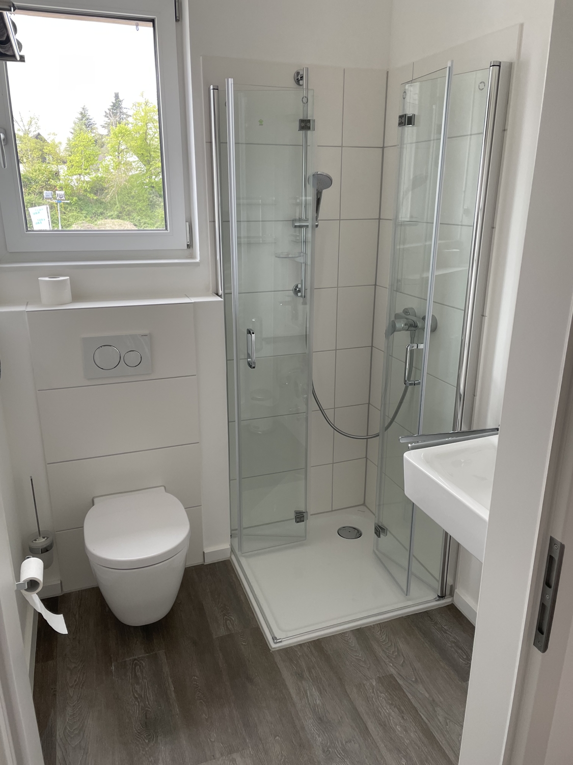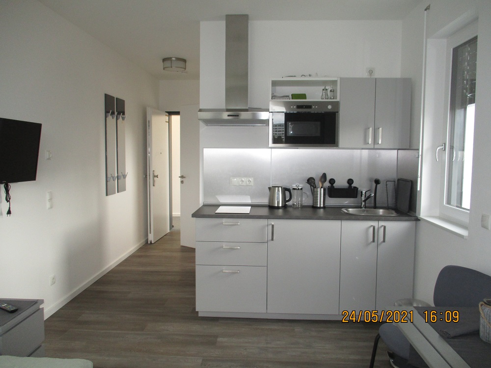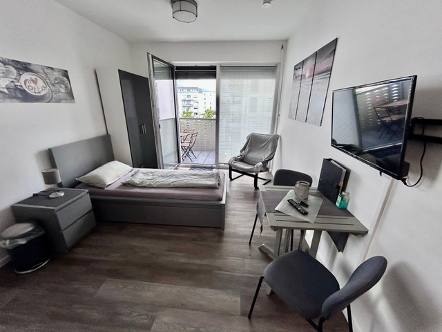 moderne und hochwertige Möblierung, Laminatboden, Singleküche mit Ceranfeld, Tageslicht Duschbad, Smart-TV, WLAN Internetanschluss, Waschmaschine in der Wohnung