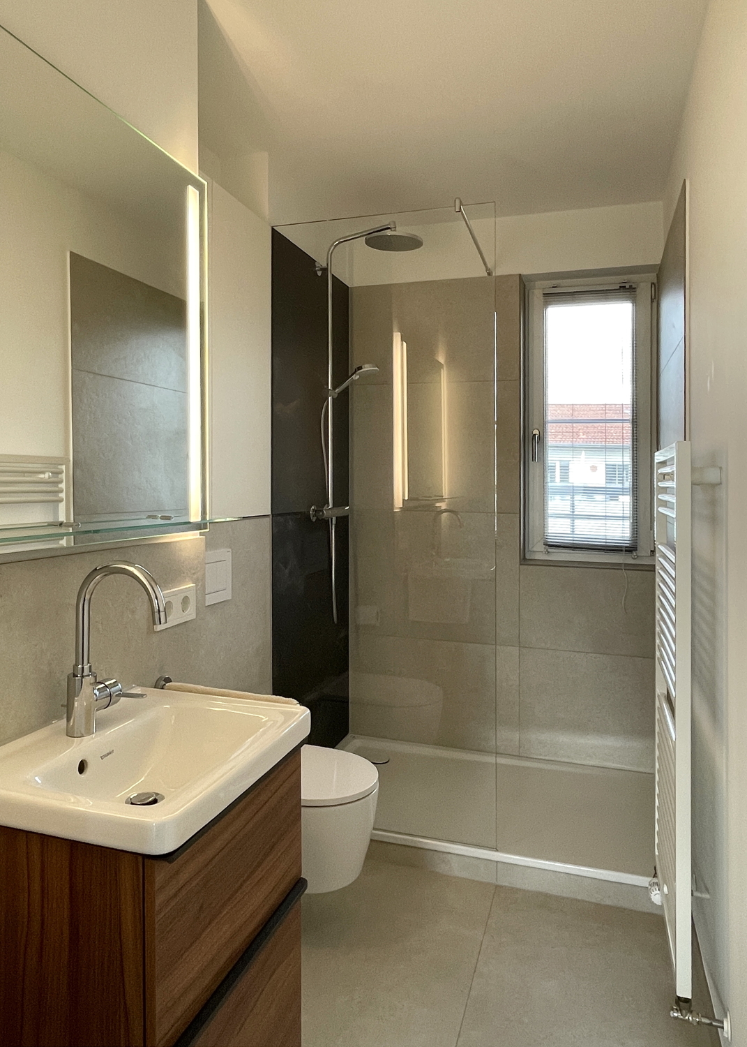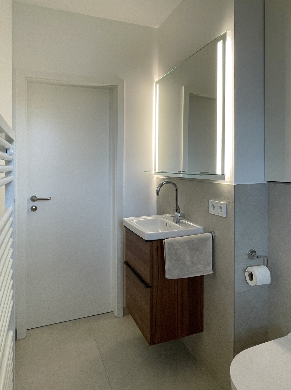 moderne Möblierung, Parkett und Fliesenboden, voll ausgestattete Einbauküche mit Mikrowelle, Geschirrspüler, Herd, Kaffeemaschine und Backofen, Weinkühlschrank, Tageslicht Wannenbad, Duschbad mit Gäste-WC, Smart-TV, Magenta TV, WLAN Internetanschluss