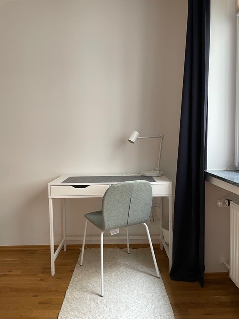 Wohnzimmer mit Essbereich. Schlafzimmer mit Doppelbett 1,40m × 2,00m, Bettwäsche und Handtücher vorhanden, WLAN inkl. Mietpreis gilt für 2 Personen. Mindestmietdauer 6 Monate. Miete inkl. Nebenkosten: 1600€ inkl. Heizung, inkl. Strom, plus 250,00 Euro Endreinigung.